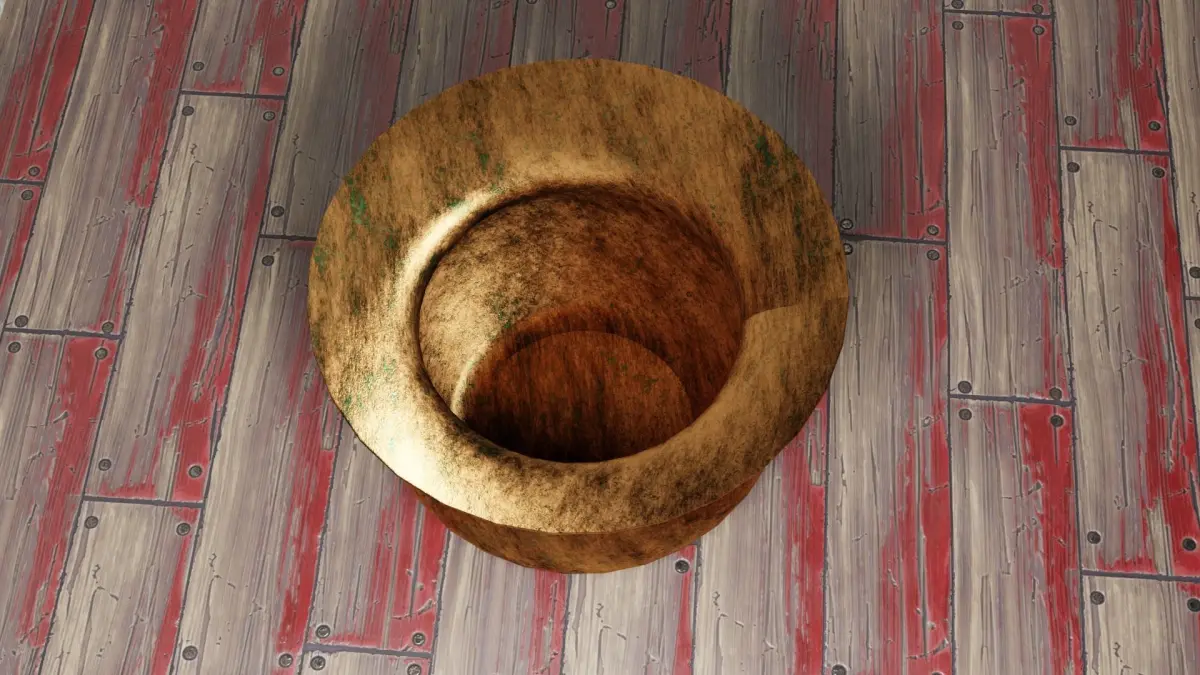 A spittoon, used as a receptacle made for spitting into, especially by users of chewing and dipping tobacco in the late 19th century. Spittoons became a common feature of pubs, brothels, saloons, hotels, stores, banks, railway carriages, and other places where people gathered. This piece is the first of many spittoons to be established and created.