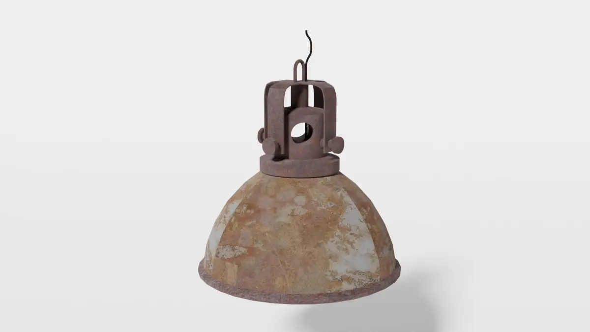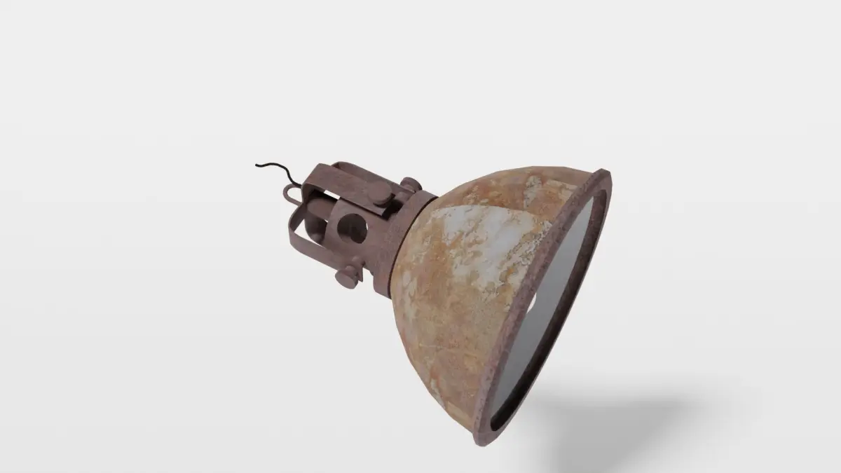 Low-poly model of a rusted industrial lamp, complete with lightbulb. Textures and materials included. Other file format is x3d.