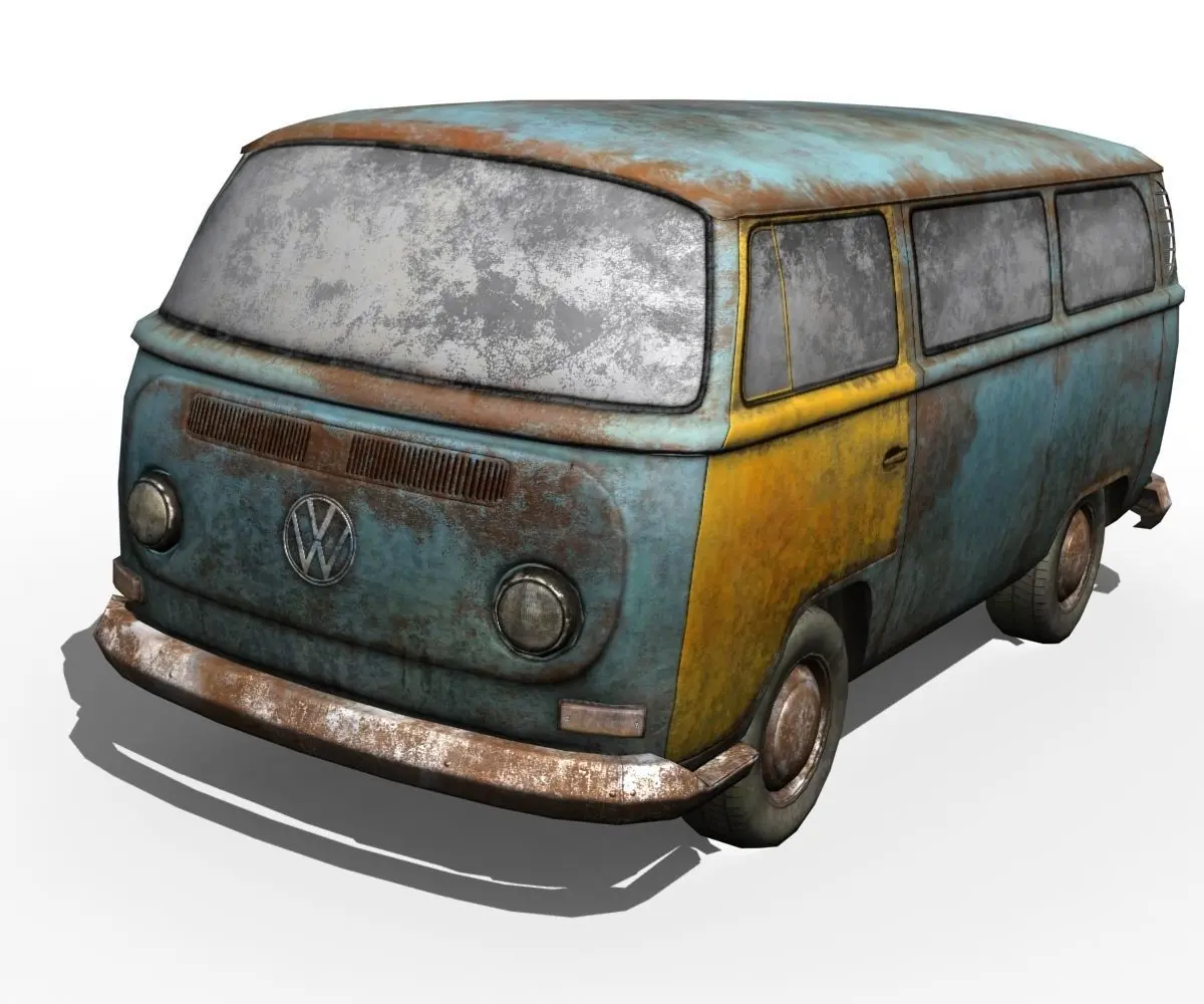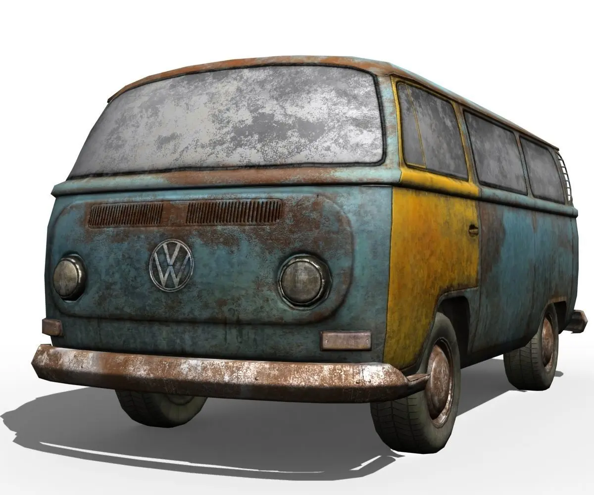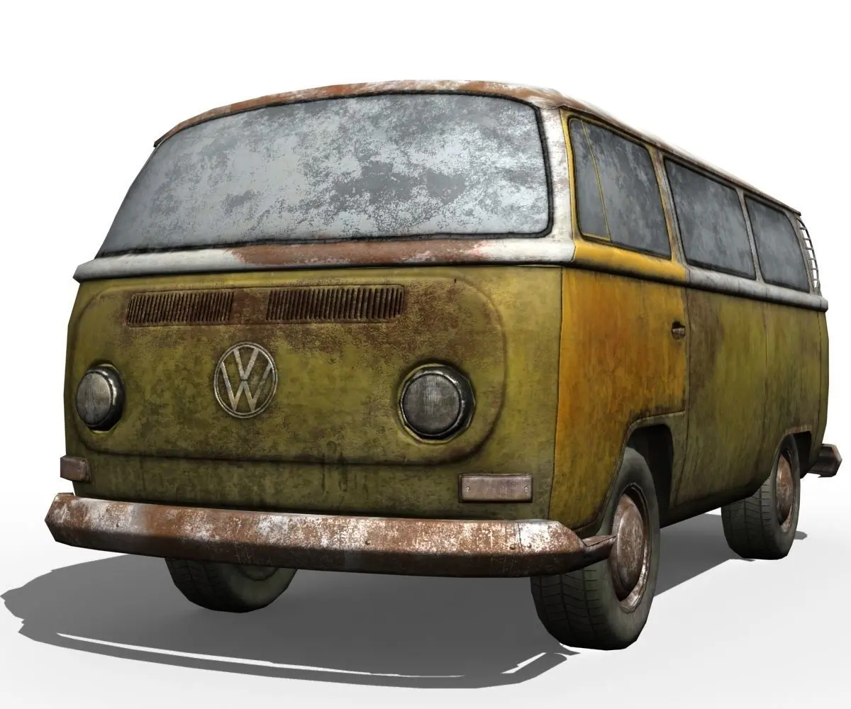 low poly volkswagen microbus with a highly detailed normal maptextures included:_Defuse 1 4096*4096_Defuse2 4096*4096_Normalmap 4096*4096_Reflection mask 4096*4096_Bumbmap 4096*4096