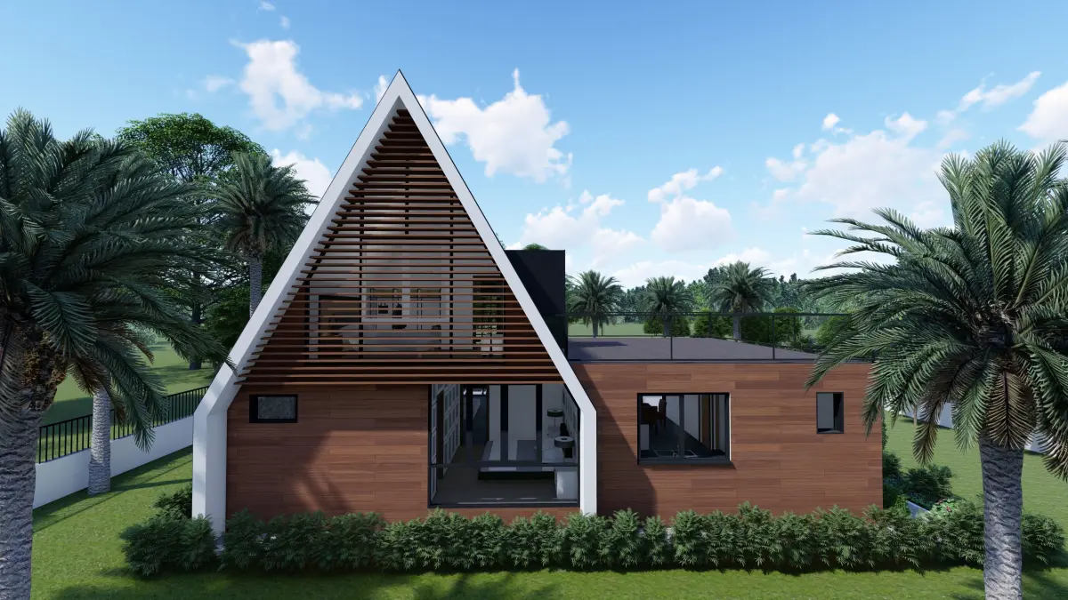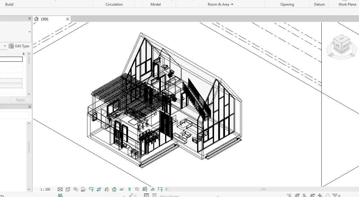 A rustic A-Frame house BIM model is created using Revit. The design is crafted by a team of professional architects and interior designers. It is suitable for any site with a beautiful view. The house features cozy transparent spaces that make you feel like you are outside while being indoors. Every corner of the house has been carefully designed to provide a unique and special experience.