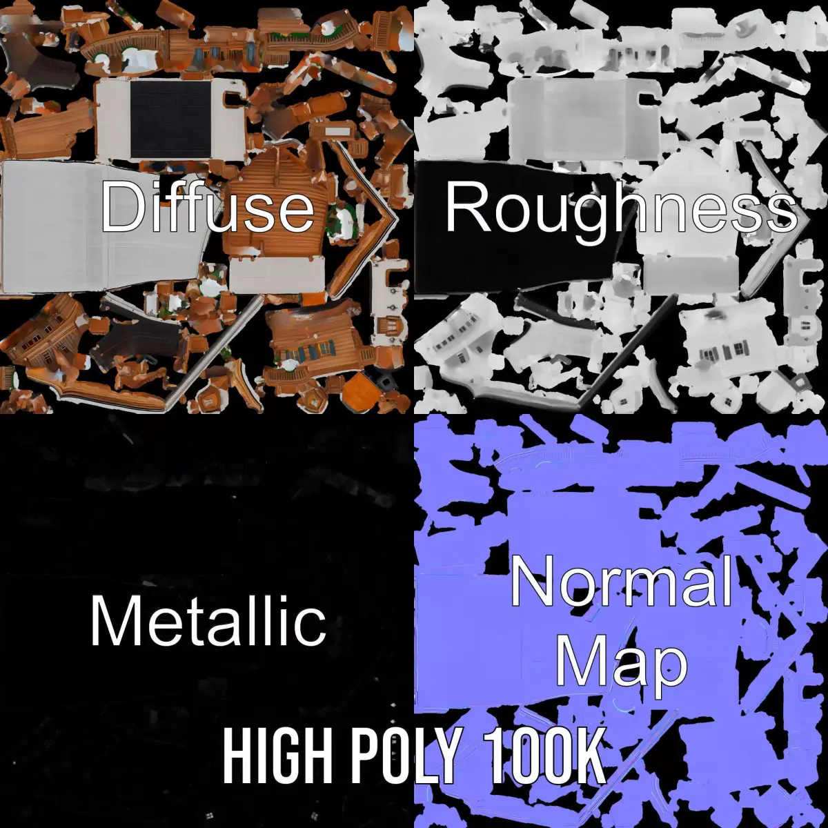 This Rustic Alpine Chalet model pack beautifully captures the essence of a traditional mountain retreat, featuring intricate wooden detailing and snow-laden balconies, perfect for winter-themed scenes. Each model has 3 levels of detail: low-poly (1000 triangles for mobile), middle-poly (10,000 triangles for environment), and high-poly (100,000 triangles), which allows for the use of this model in production rendering (such as 3ds Max, Maya, Cinema4D, Blender, Vray/Corona/Cycles, and all others), game engines (Unity and Unreal compatible), and interactive presentations, providing a choice of detail based on the LOD System principle. Ideal for architectural visualization, game assets, or VR experiences, the model's realistic textures enhance the immersive feel of any project. The model's textures are PBR, Diffuse, NormalMap, and reflection/roughness/metallic, which are suitable for any modern rendering engine. All models are accurately unwrapped and have no overlapping UV. All textures are 4096*4096 in size. If you like this model, please consider liking and leaving a comment!