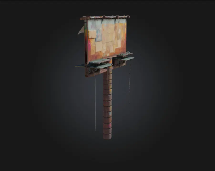 Rustic Billboard Art evokes the atmosphere of forgotten highways and quiet rural towns. Ideal for post-apocalyptic environments, Americana dioramas, or vintage-styled 3D scenes, this model blends age, story, and detail into a versatile background prop.
