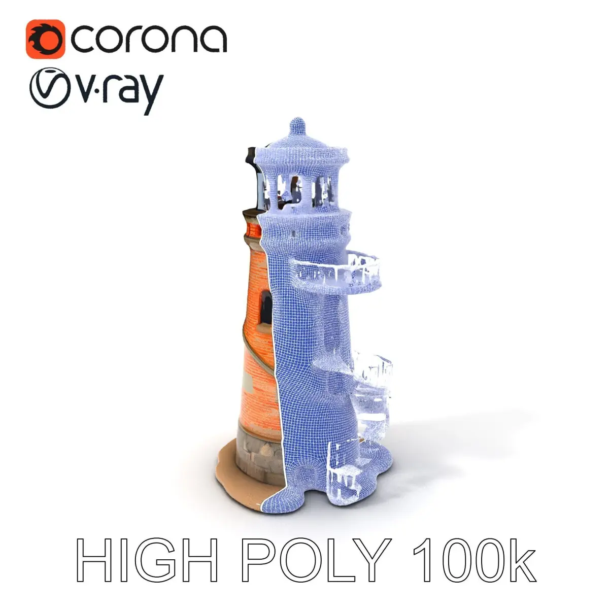 This versatile 3D model pack of a rustic brick lighthouse offers three levels of detail: low-poly (1,000 triangles) for mobile use, mid-poly (10,000 triangles) for environment integration, and high-poly (100,000 triangles) for detailed production rendering. Ideal for game engines such as Unity and Unreal, or for rendering in 3ds Max, Maya, Cinema4D, and Blender. The model features high-quality PBR textures including Diffuse, NormalMap, and reflection/roughness/metallic maps. All textures are 4096*4096 and ensure a realistic representation with no overlapping UVs. Enhance your projects with this lighthouse model in scenes involving maritime settings, coastal environments, or architectural visualizations. The first image is the reference used for creating the 3D model. It is important to carefully evaluate the quality of the model by examining the preview images that display the topology and polygonal mesh. These previews (WIRE and WEB 3D Preview) clearly demonstrate how accurately the model matches the original reference and how well the geometry has been executed. Like and leave a comment if you enjoy this model!