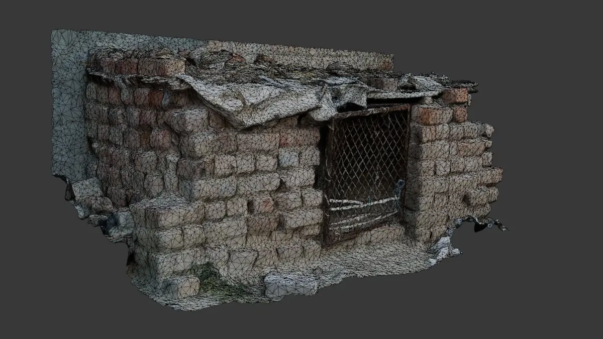 This 3D model depicts a rustic, abandoned brick structure with a wire mesh door and a weathered tarp roof. Ideal for post-apocalyptic scenes, construction sites, or rural environments, this model captures the realism of an old, deteriorated building. The bricks are uneven, and the surfaces show signs of aging, giving it a strong visual appeal for games, renders, and visualizations. Available in formats like FBX, GLB, OBJ, STL, and Blend, this model comes with 4K PBR textures for high-quality close-up renders and integration in any 3D pipeline.