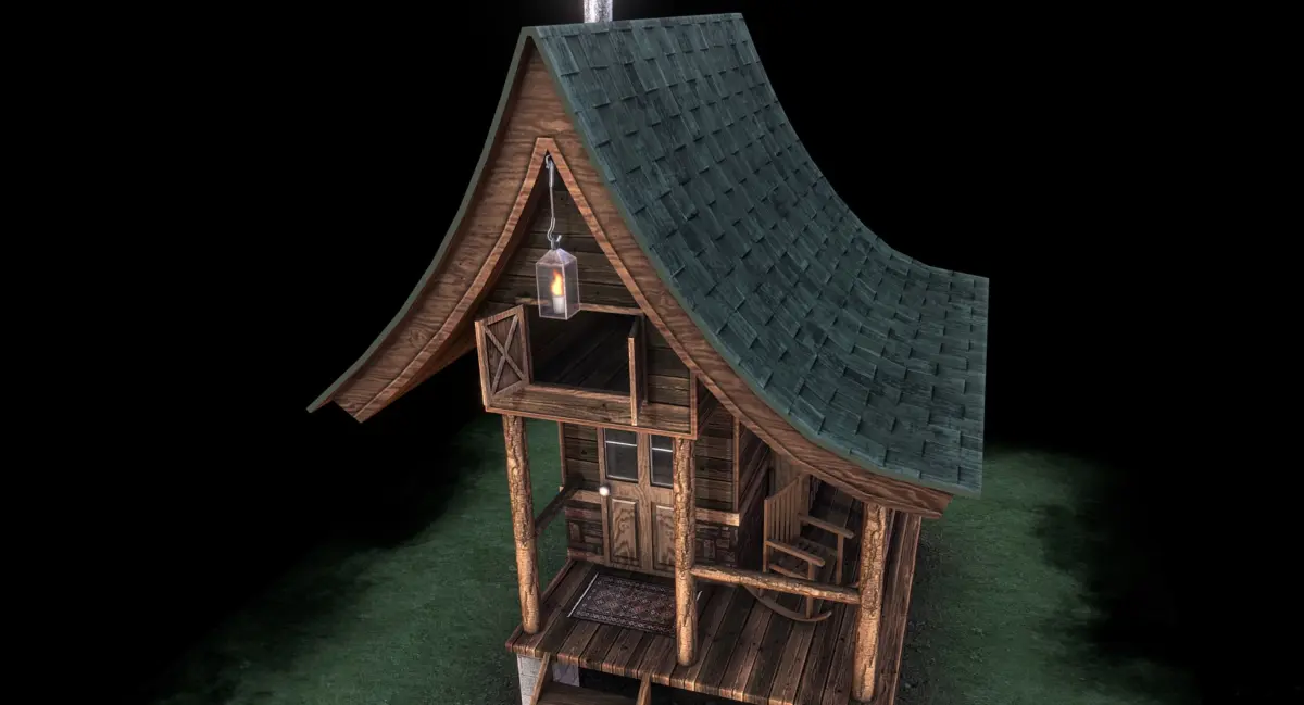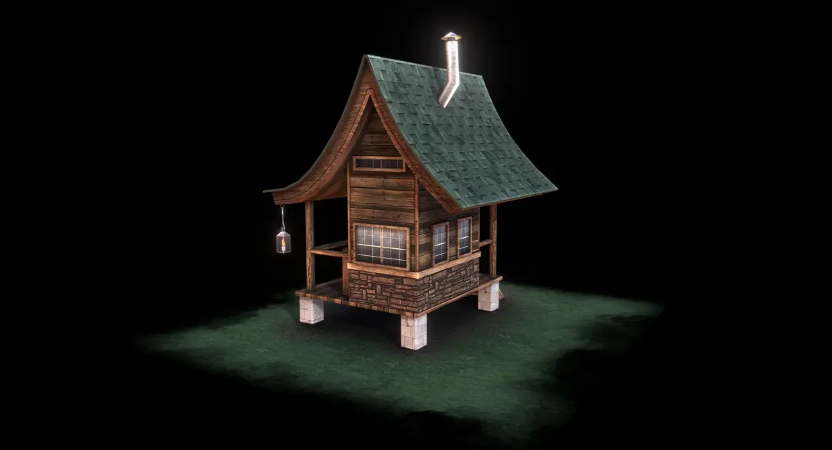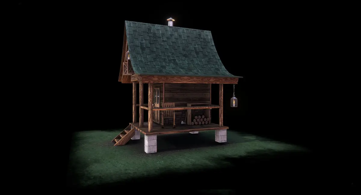 Game ready model of a humble cabin. Modeled very low poly for excellent performance in real time applications. This model is ONE static mesh and uses a 2048 x 2048 diffuse map with an alpha channel and a glow map. The terrain tile it sits on uses a 1024 x 1024 diffuse and opacity map.