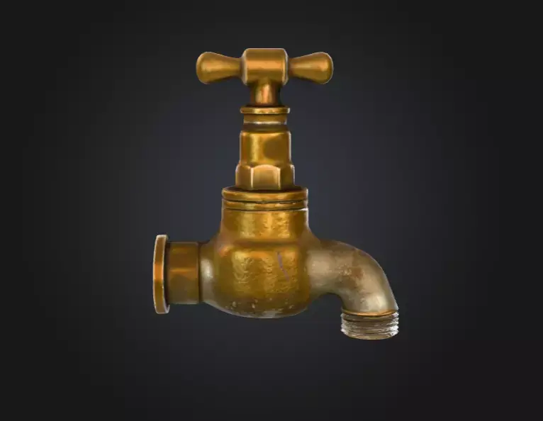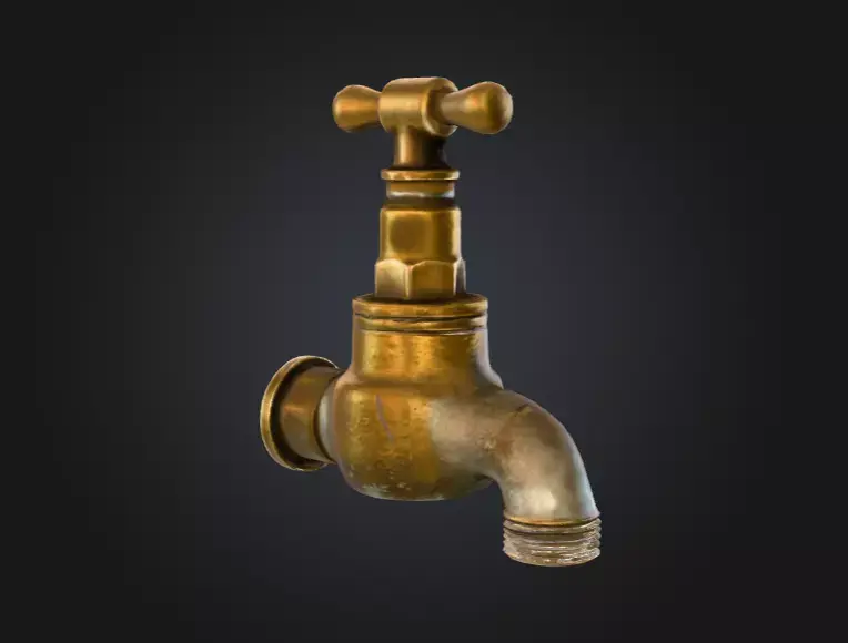 Every curve, screw, and edge has been carefully modeled and textured using PBR materials, creating a realistic interplay of light across its metallic surface. The aged brass finish reflects years of exposure to moisture and air, resulting in a tactile look that feels both antique and functional. It’s not merely a tap — it’s a piece of history rendered in digital form, perfect for invoking nostalgia and realism in any visual project.