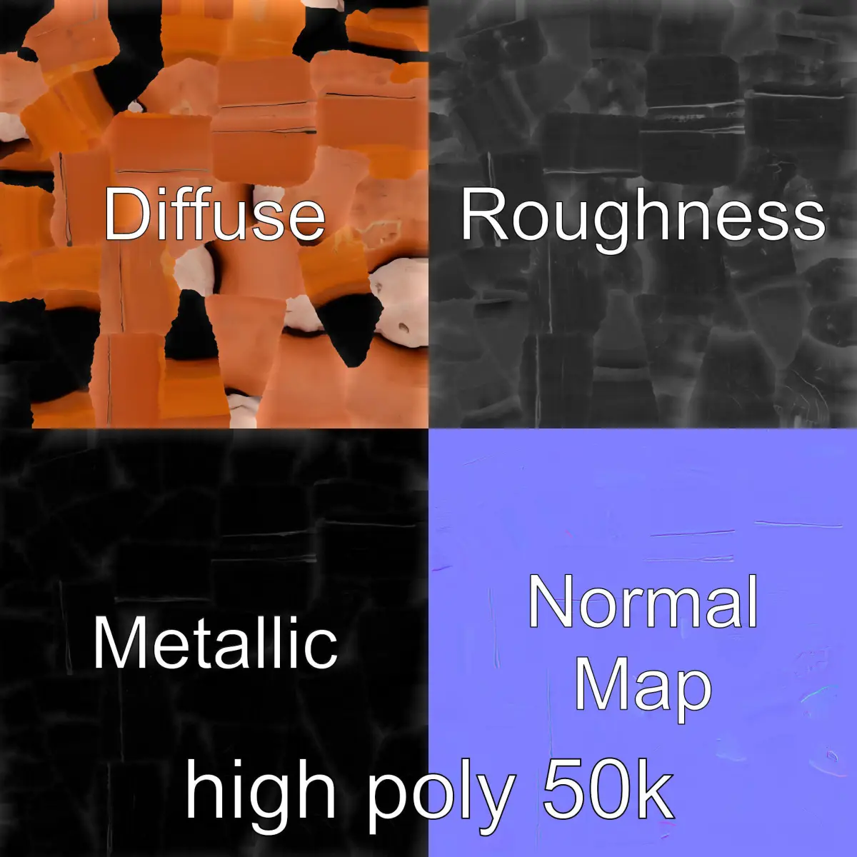 Each model has 3 levels of detail: low-poly, middle-poly, and high-poly, which allows for the use of this model in production rendering (such as 3ds max, Maya, Cinema4D, Blender, Vray/Corona/Cycles and all others), game engines (Unity and Unreal compatible), and interactive presentations, providing a choice of detail based on the LOD System principle. This clay pot model is ideal for architectural visualizations, virtual reality scenes, and historical reconstructions. The model's textures are PBR, Diffuse, NormalMap, and reflection/roughness/metallic, suitable for any modern rendering engine. All models are accurately unwrapped with no overlapping UV. Textures are 4096*4096 in size. If you like this model, please leave a comment and like!