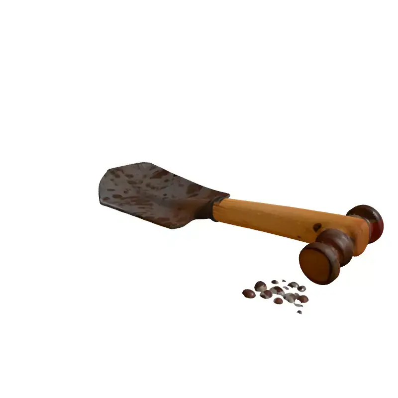 This exquisitely detailed 3D model presents a unique, conceptual fusion: a rustic shovel blade integrated with a traditional manual coffee grinder mechanism. Covered in realistic coffee grounds, this model captures a sense of a tool used for its unusual purpose. It is ideal for high-quality digital art, conceptual design projects, unique prop placement in various scenes, advertising visuals, or surrealistic renders. The model features meticulously crafted, clean topology and is fully UV unwrapped, ensuring seamless texture application. It comes with high-resolution PBR textures, providing realistic material properties and wear, including the distinctive dirty/grungy look of metal and the warm tones of wood, enhanced by scattered coffee grounds. This asset is suitable for both static renderings, where detail and realism are paramount, and can be optimized for real-time applications such as game development, augmented reality (AR), or virtual reality (VR) experiences, depending on the level of detail required for optimization. It is provided in a comprehensive range of industry-standard file formats, including GLB, OBJ, STL, ABC, DAE, FBX, USD, and PLY, ensuring maximum compatibility across various 3D software and engines. This versatile model is also ready for subdivision if higher detail is desired for close-up shots.