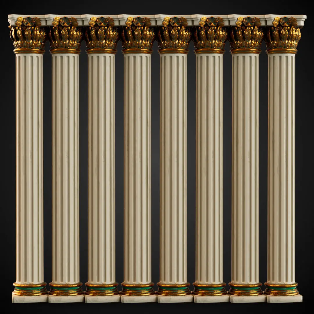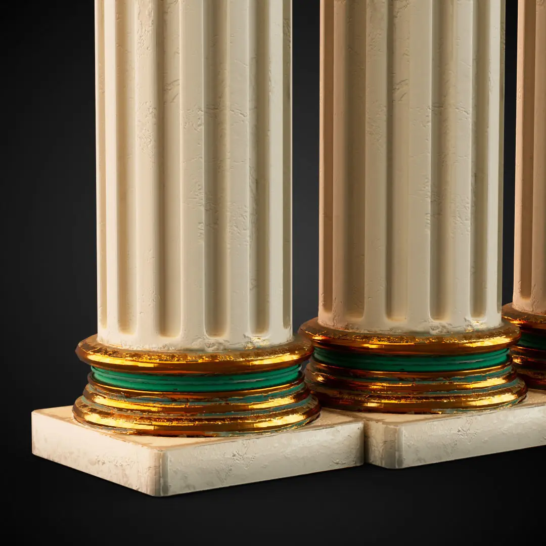 Rustic Colomn with golden details 3D model
