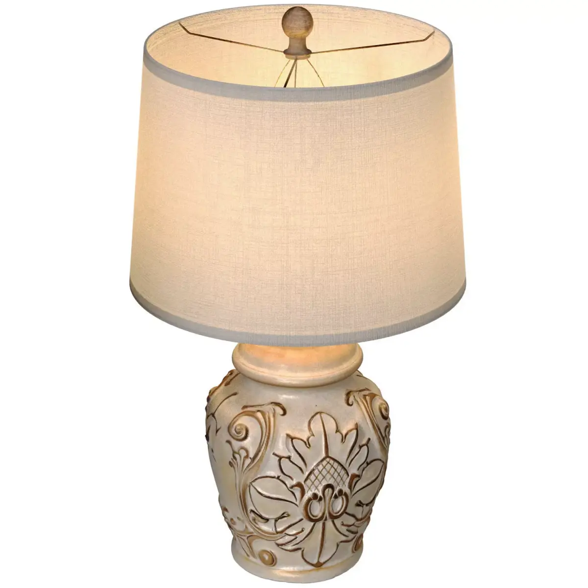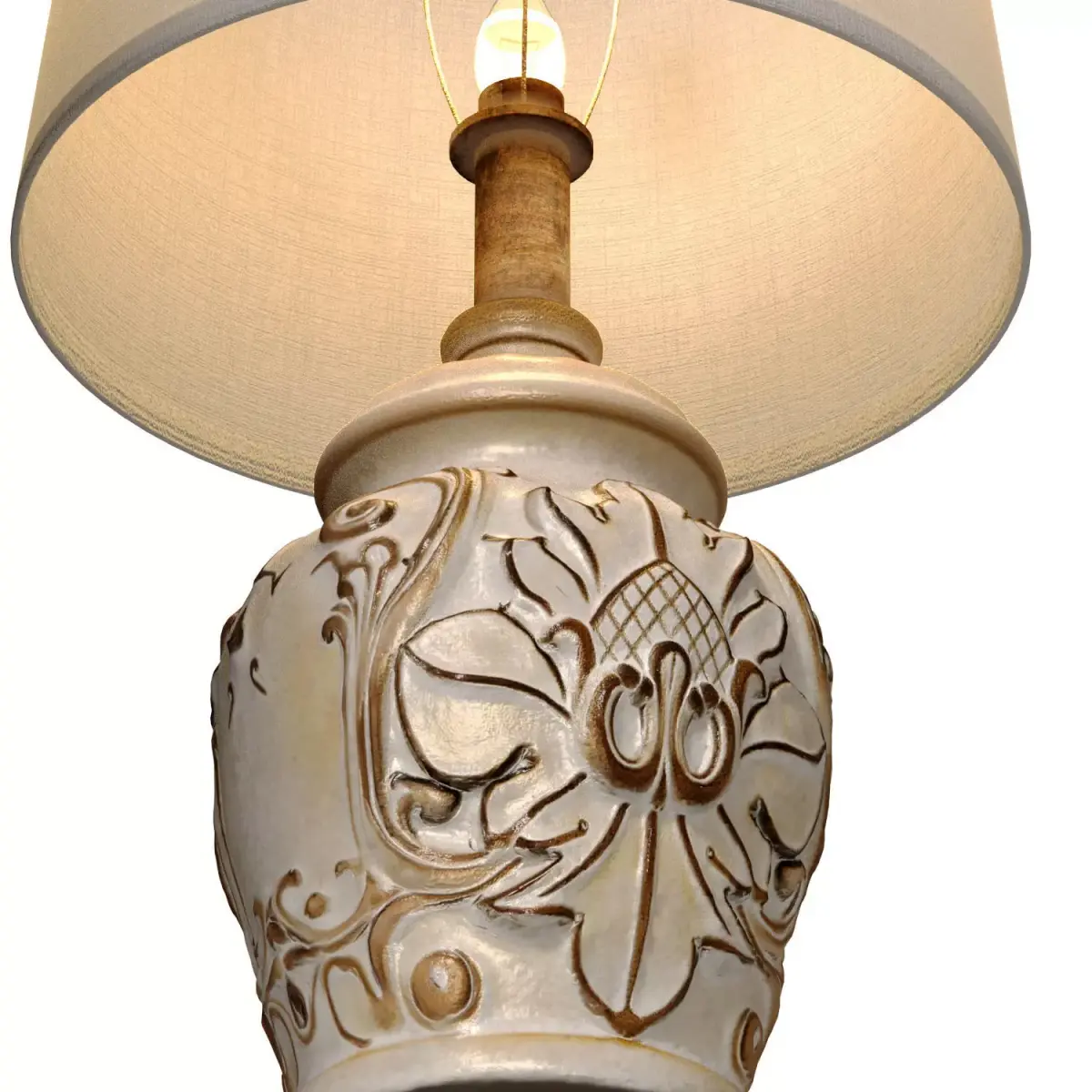 Rustic Country Desk Lamp with Carved Wooden BaseAmerican Country Vintage Solid Wood Carved Table Lamp Bedroom Decorative Lamps and Lanterns