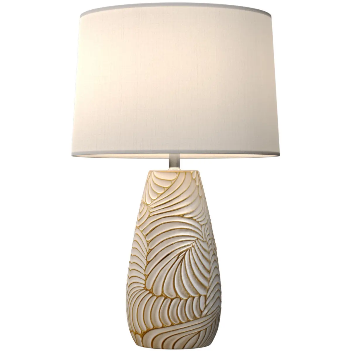 Wrap your living space in a soothing glow with our Eliza desk lamp. Consisting of a neutral fabric lampshade that warms the light and a beautifully patterned base, this piece will light up your home by adding a decorative texture.