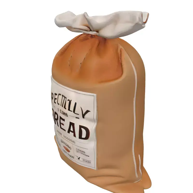This highly detailed 3D model represents a rustic flour sack, specifically designed for bread production. The sack features a realistic burlap texture and a unique design where the top portion mimics a freshly baked loaf of bread, adding a charming and authentic touch. A clear, branded label 'SPECTALLY FLOUR BREAD' is prominently displayed, enhancing its visual appeal. This versatile asset is perfect for a wide range of digital projects, including game development, where it can serve as an immersive prop in kitchen, market, or bakery environments. It is also ideal for architectural visualization scenes, adding a touch of realism to rustic or modern kitchen interiors and pantries. Digital artists can utilize this model to enrich their renders and scenes, bringing depth and character to their creations. The model is optimized for both real-time applications, ensuring smooth performance in AR/VR experiences and game engines, and for high-quality static renderings, delivering photorealistic results in architectural and product visualizations. It boasts clean topology, ensuring easy integration and modification within various 3D software. The model comes fully UV unwrapped, allowing for easy texture application and modification. High-resolution PBR (Physically Based Rendering) textures are included, providing realistic surface properties such as albedo, roughness, and normal maps for an authentic look under any lighting condition. Supported file formats include GLB, OBJ, STL, ABC, DAE, FBX, USD, and PLY, ensuring broad compatibility across different platforms and workflows.