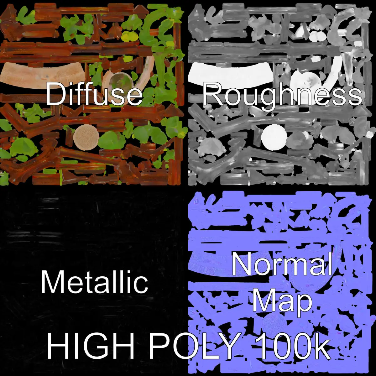 This 3D model of a rustic iron plant stand is intricately designed with three levels of detail, making it suitable for various uses such as production rendering in 3ds Max, Maya, Cinema 4D, Blender, Vray, Corona, Cycles, game engines like Unity and Unreal, and interactive presentations. Its high-quality PBR textures, which include Diffuse, NormalMap, and reflection/roughness/metallic, fit perfectly into any modern rendering engine. With all textures at 4096x4096 resolution, it provides superb detail and accuracy. This model is ideal for architectural visualizations, interior decor simulations, and virtual staging. It features accurately unwrapped UVs with no overlapping, ensuring a seamless look. The first image is the reference used for creating the 3D model. It is important to carefully evaluate the quality of the model by examining the preview images that display the topology and polygonal mesh. These previews (WIRE and WEB 3D Preview) clearly demonstrate how accurately the model matches the original reference and how well the geometry has been executed. If you found this model helpful, please like and leave a comment!