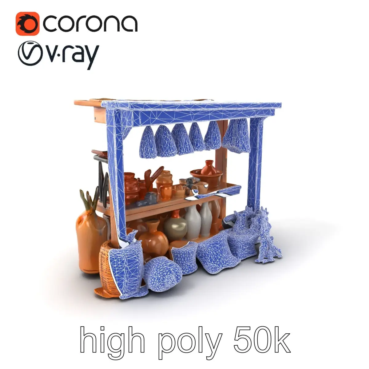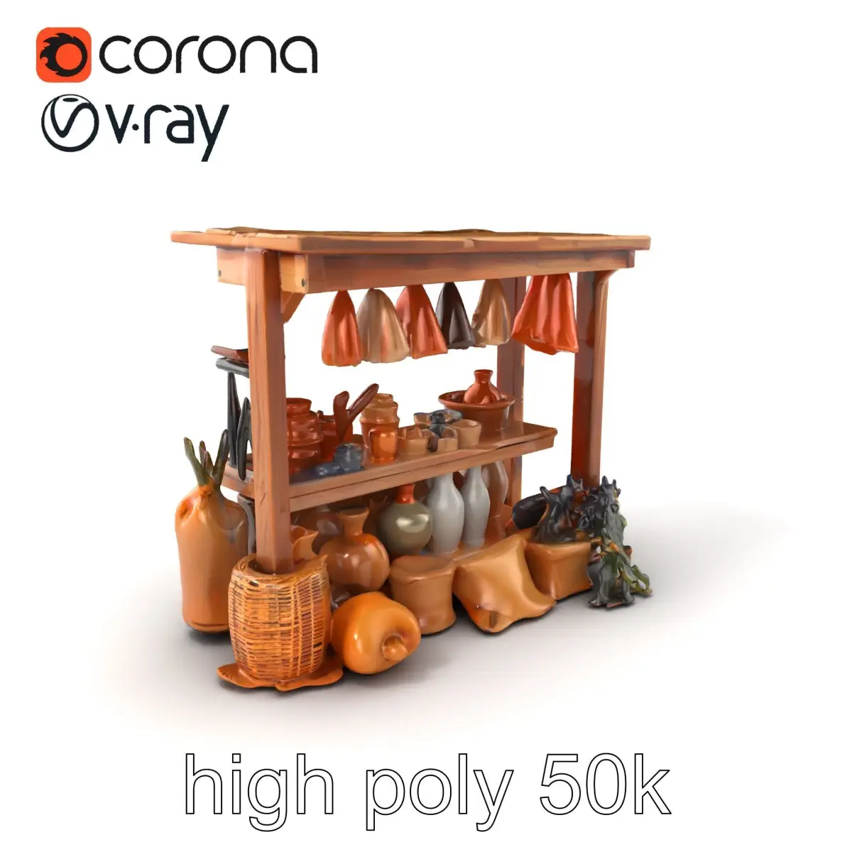 Each model has 3 levels of detail: low-poly, middle-poly, and high-poly, which allows for the use of this model in production rendering(such as 3ds max, Maya, Cinema4d, Blender, Vray/Corona/Cycles and all other), game engines (Unity and Unreal compatible), and interactive presentations, providing a choice of detail based on the LOD System principle. Ideal for creating vintage market scenes, enhancing period-themed games, or adding rustic charm to design visualizations. The model's textures are PBR, Diffuse, NormalMap, and reflection/roughness/metallic, which are suitable for any modern rendering engine. All models accurately unwrapped and have no overlapping UV. All textures are 4096*4096 in size. If you liked this model, please like and leave a comment. Your feedback is greatly appreciated!