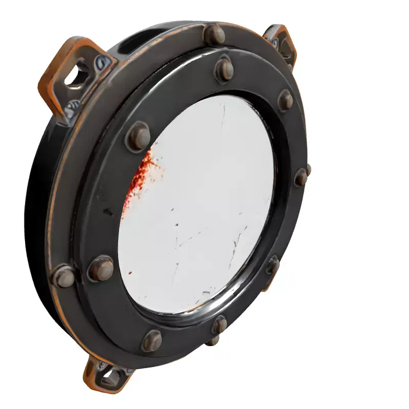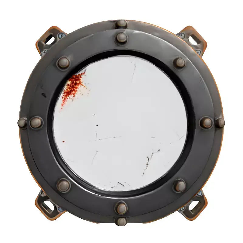 This highly detailed 3D model presents a vintage industrial porthole window, meticulously crafted with a robust metallic frame and a clear glass pane. The model showcases authentic wear and tear, including subtle scratches on the glass and realistic rust spots on the metal, imbuing it with a weathered, aged aesthetic perfect for historical or post-apocalyptic settings. It's an ideal asset for game development, serving as an environmental prop for ships, submarines, or industrial structures within immersive worlds. Architectural visualization projects focusing on nautical themes, steampunk designs, or industrial loft interiors will find this model exceptionally suitable. Furthermore, its optimized geometry and PBR textures make it excellent for augmented reality (AR) and virtual reality (VR) applications, providing a realistic and engaging user experience. Digital artists can leverage this model to enhance their scenes with a touch of authentic realism and historical character. The model is optimized for real-time rendering, ensuring smooth performance in game engines while maintaining high visual fidelity for static renders and cinematics. It features clean topology, which is essential for efficient rendering and potential further subdivision if higher detail is required. The asset is fully UV unwrapped, allowing for precise texture mapping, and comes with high-quality PBR textures that accurately represent the distressed metal and reflective glass surfaces. Supported file formats include GLB, OBJ, FBX, USD, DAE, and ABC, ensuring broad compatibility across various 3D software and platforms. This versatile porthole is ready to be integrated into any project requiring a touch of maritime history or rugged industrial design.