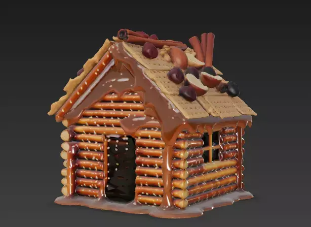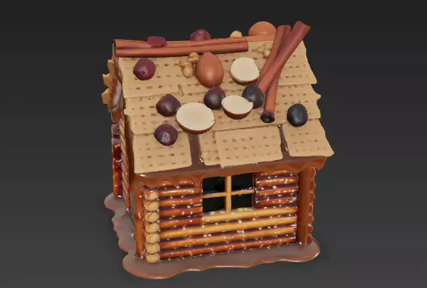 Natural Nut & Spice Decor Instead of bright gummy candies, the roof is topped with whole hazelnuts, almonds, and cinnamon sticks. This gives the asset an earthy color palette, suggesting a spiced or nutty flavor profile rather than pure sugar.