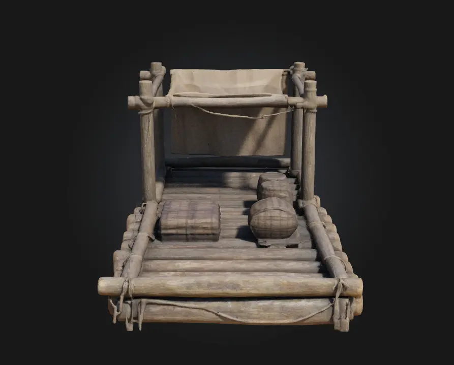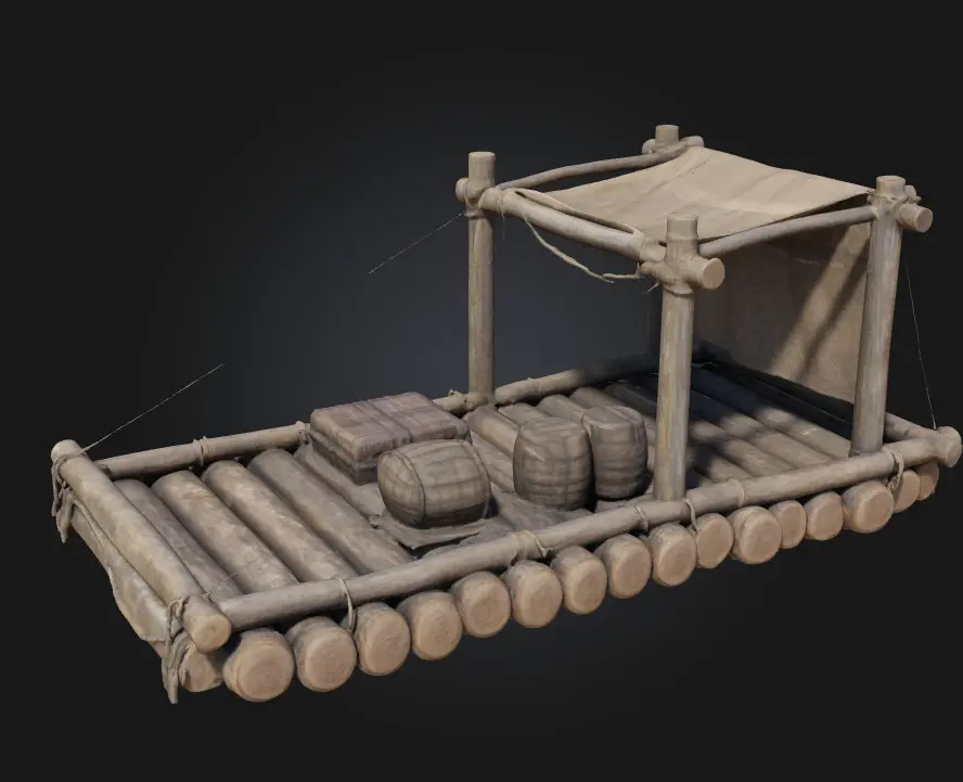 The Rustic Raft Journey prop captures the charm of a handmade wooden raft, perfect for storytelling in survival, adventure, or historical scenes. It’s designed to evoke the feeling of a slow drift down a forgotten river or across a misty lake.