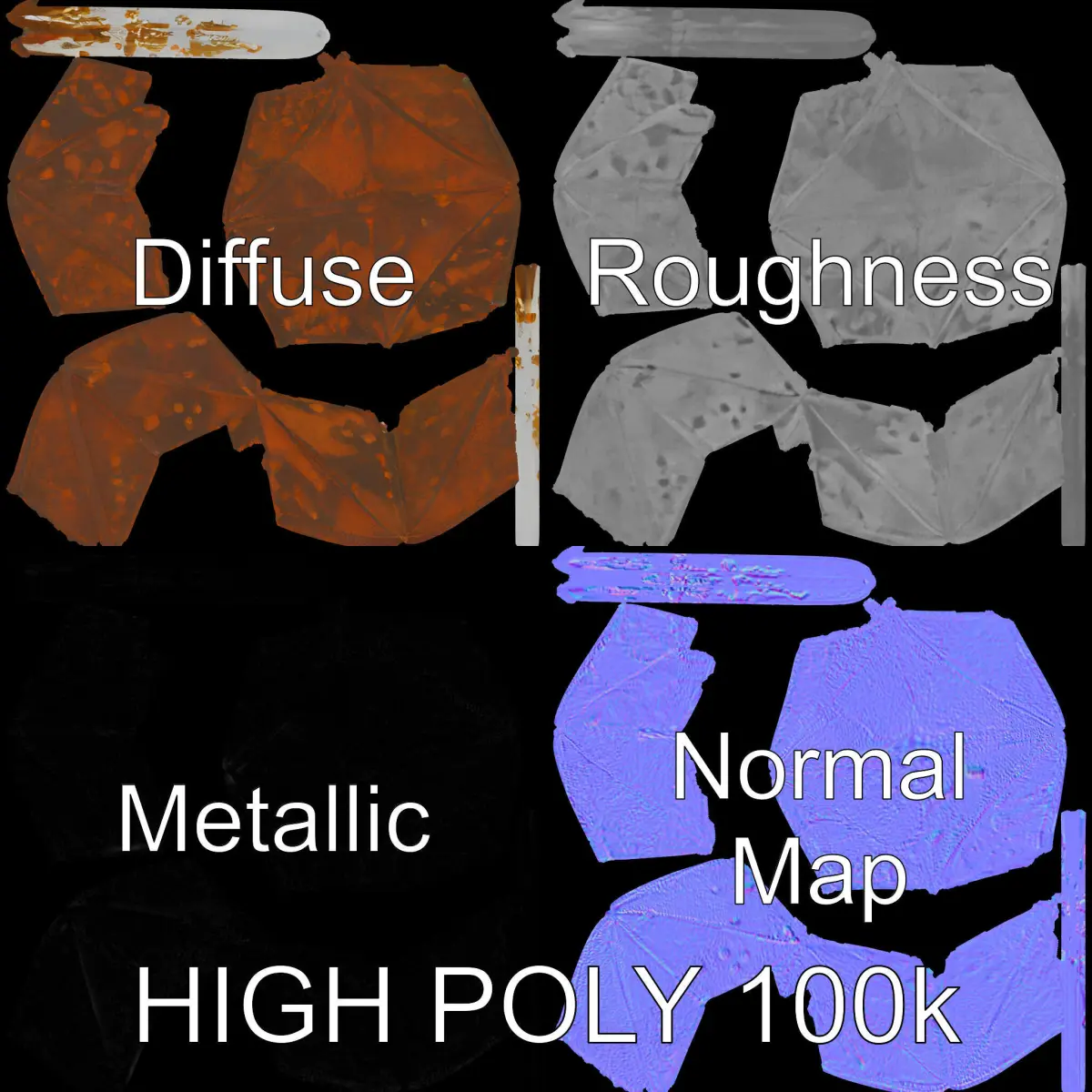 The model is carefully textured using PBR materials including Diffuse, NormalMap, and reflection/roughness/metallic maps, ensuring realistic appearance in all rendering engines. All textures are 4096x4096 in size.