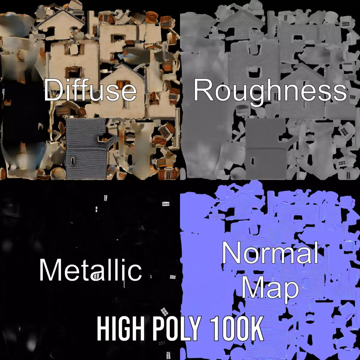 The model's textures are PBR, Diffuse, NormalMap, and reflection/roughness/metallic, which are suitable for any modern rendering engine. All models are accurately unwrapped and have no overlapping UVs. All textures are 4096x4096 in size.