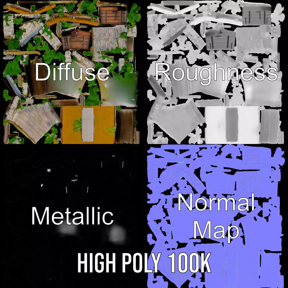 This Rustic Stone Cottage model pack offers a charming and detailed 3D structure perfect for rural or fantasy environments. Each model has 3 levels of detail: low-poly (1000 triangles for mobile), middle-poly (10,000 triangles for environment), and high-poly (100,000 triangles), which allows for the use of this model in production rendering in software like 3ds Max, Maya, Cinema 4D, Blender, and game engines like Unity and Unreal. Ideal for game developers creating village scenes, filmmakers visualizing cozy towns, or VR experiences needing a rustic touch. The model's textures are PBR, including Diffuse, Normal Map, and reflection/roughness/metallic, suitable for any modern rendering engine. All models are accurately unwrapped with no overlapping UVs, and textures are 4096x4096 in size. Please like and leave a comment if you enjoyed this model pack.