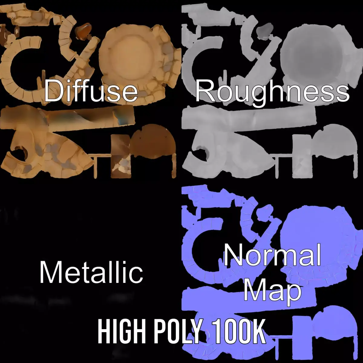 This rustic stone fountain model exudes a classic charm, perfect for enhancing garden and outdoor scenes. Its detailed stone texture and elegant design make it ideal for historical or rural settings, providing an authentic touch. Each model has 3 levels of detail: low-poly (1000 triangles for mobile), middle-poly (10,000 triangles for environment), and high-poly (100,000 triangles), which allows for use in production rendering (such as 3ds Max, Maya, Cinema4D, Blender, Vray/Corona/Cycles and all others), game engines (Unity and Unreal compatible), and interactive presentations, providing a choice of detail based on the LOD system principle. The model's textures are PBR, Diffuse, NormalMap, and reflection/roughness/metallic, which are suitable for any modern rendering engine. All models accurately unwrapped and have no overlapping UVs. All textures are 4096x4096 in size. Perfect for architectural visualizations, virtual garden tours, or historical reconstructions. If you enjoyed this model, please like and leave a comment!