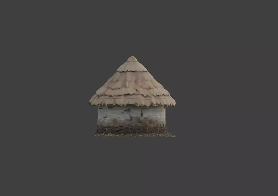 The structure is made from woven wooden supports and clay walls, topped by a carefully detailed thatched roof. Subtle wear marks, moss hints, and earthy tones give it a lived-in realism, perfect for both stylized and semi-realistic scenes. The model is designed to blend seamlessly into open-world games, low-poly environments, or animated storytelling projects.