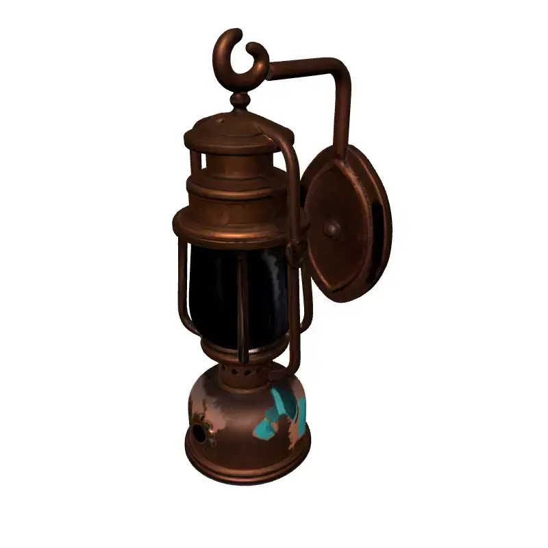 This is a highly detailed 3D model of a rustic vintage outdoor wall lantern, perfectly capturing an antique aesthetic. The design features a classic lantern silhouette crafted from aged metal, exhibiting beautiful wear and a distinctive turquoise-green patina. This weathered texture gives the model a rich history and authentic character, making it visually compelling. Inside the clear glass enclosure, an Edison-style filament light bulb adds to the vintage charm, providing a warm and inviting glow. This model is exceptionally versatile, ideal for a wide range of 3D visualization projects. It is perfectly suited for architectural visualization, enhancing the exteriors of traditional homes, historical buildings, or cozy cabins. Game developers will find it an excellent asset for creating immersive environments in rustic, medieval, industrial, or even steampunk-themed games. Its optimized geometry and PBR (Physically Based Rendering) textures ensure stunning realism in both real-time applications like AR/VR experiences and high-quality static renders. The model is fully UV unwrapped with clean, efficient topology, making it ready for immediate integration into any scene. Supported file formats include GLB, OBJ, FBX, USD, DAE, and STL, ensuring broad compatibility across various 3D software and engines. With its intricate details and carefully crafted textures, this lantern promises to add an authentic touch to your digital projects. Elevate your scene with this charming and highly realistic vintage lighting fixture.