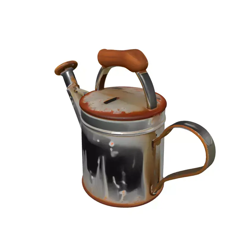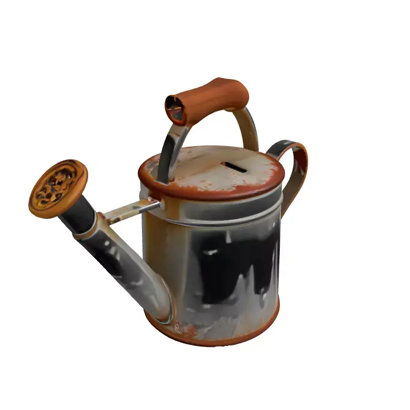 This highly detailed 3D model presents a vintage and weathered watering can, cleverly repurposed as a charming piggy bank or money box. The model boasts realistic PBR textures, showcasing authentic signs of age, including rusty metal surfaces, chipped paint, and a classic wooden handle, providing a rich, historical feel. Ideal for a wide range of digital projects, it can serve as an immersive prop in game development, adding character to environmental scenes in a rustic garden, an old shed, or a cozy interior. It's also perfect for architectural visualization, creating a focal point in exterior renders, or enhancing digital art compositions with a touch of nostalgia. Furthermore, its optimized geometry and clean UV unwrapping make it suitable for real-time applications such as augmented reality (AR) and virtual reality (VR) experiences. The model is prepared for static renderings and can be easily integrated into any scene. Supported file formats typically include GLB, OBJ, FBX, USD, DAE, ABC, and PLY, ensuring broad compatibility across various 3D software. Its robust design and high-quality textures make it ready for close-up shots and high-resolution renders, providing excellent visual fidelity and adding a unique touch to any digital creation.
