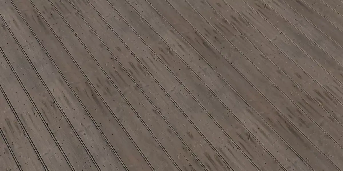 Create believable rustic floors and exterior boards with this 4K seamless PBR texture featuring lightly dented planks, small nail holes, and soft bevelled seams. The BaseColor delivers neutral brown‑gray tones with gentle sun fade, grading cleanly across daylight and warm interior HDRIs without color cast. The Normal map captures shallow dings, tool marks, and micro undulation for convincing grazing highlights in real‑time and offline pipelines. Roughness is authored as dry, uncoated wood—matte overall with slightly smoother traffic streaks—preventing plastic sheen while maintaining specular breakup. AO subtly deepens plank separation and recesses to keep contact shadows readable under varied lighting. Tiling is edge‑matched for large rooms, porches, and props without visible repetition at typical camera distances; recommended scale sets board width near 10–12 cm for realistic proportion. Works out‑of‑the‑box with Blender Principled BSDF, Unreal, Unity, 3ds Max, Maya, C4D, V‑Ray, Arnold, Redshift, Octane, and Houdini. Delivered at 4096×4096 with BaseColor, Normal (OpenGL), Roughness, and AO; packed ORM/RMA variants available on request. Licensed for commercial use in games, film, and visualization; redistribution of raw maps is prohibited.