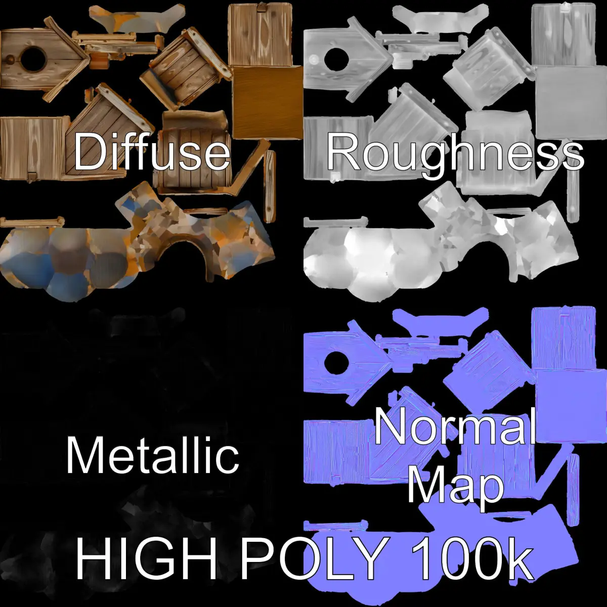 The birdhouse model is accurately unwrapped with no overlapping UVs, and all textures are 4096*4096 in size.
