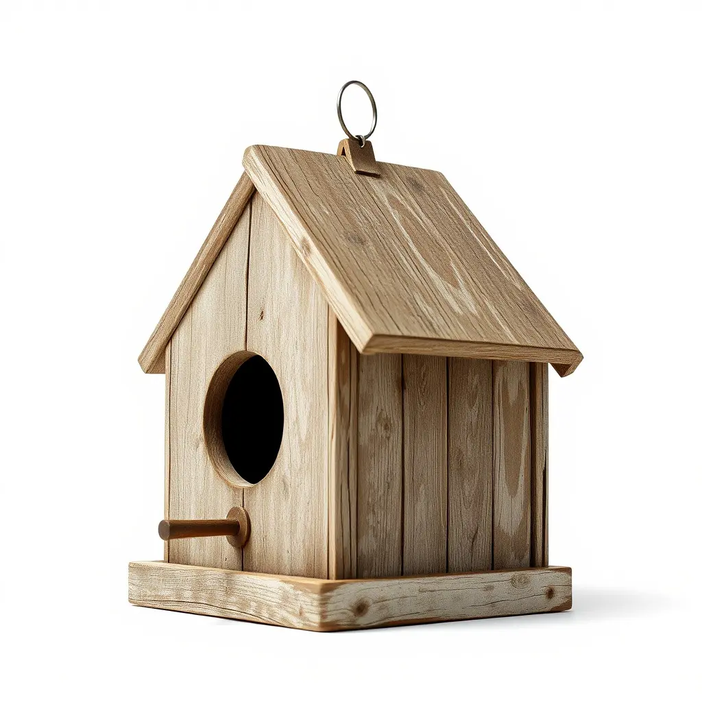 This detailed 3D model pack features a charming rustic wooden birdhouse, ideal for rendering, game development, or architectural visualization.