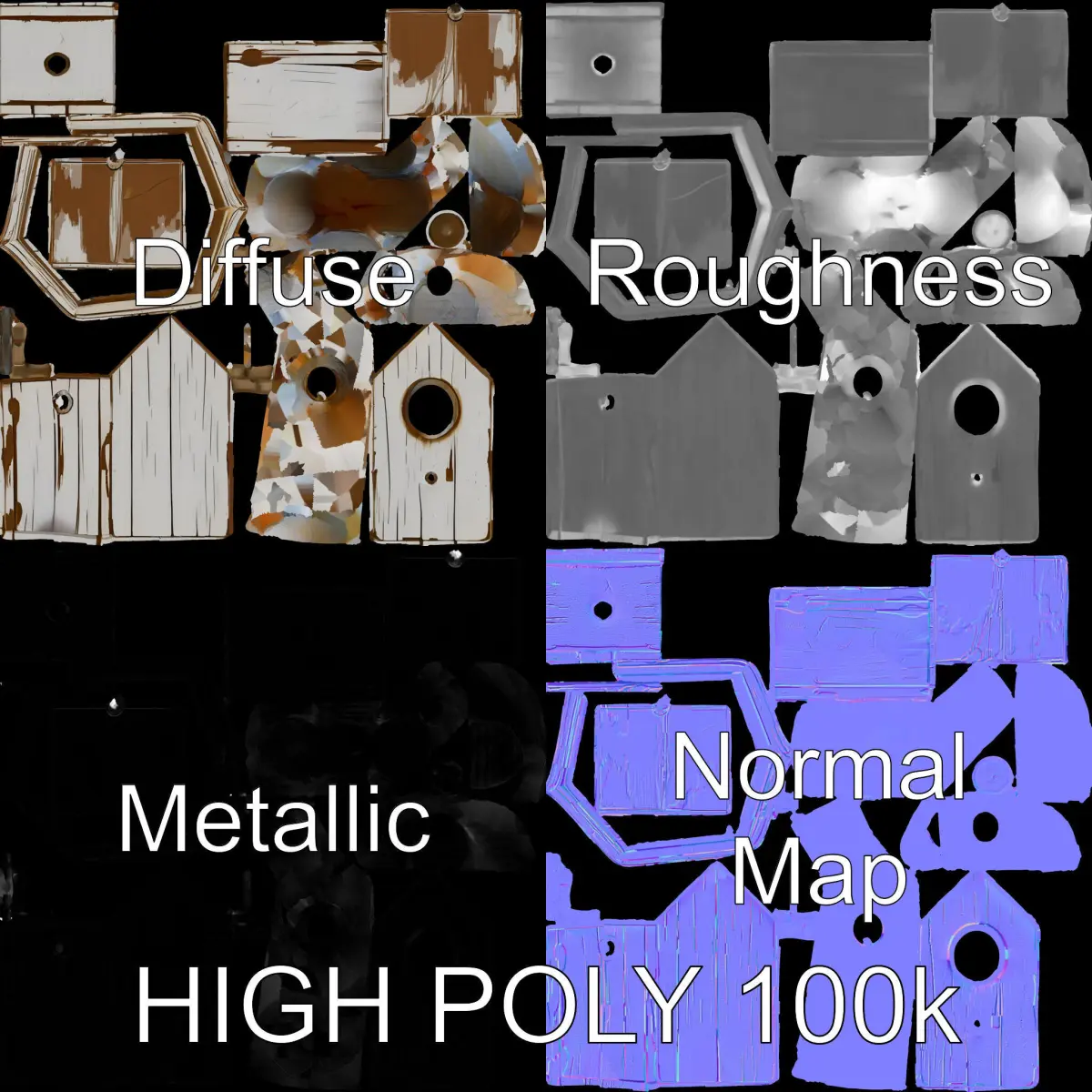 This Rustic Wooden Birdhouse Model Pack offers three levels of detail: low-poly for mobile (1000 triangles), middle-poly for environments (10,000 triangles), and high-poly for production rendering (100,000 triangles). Ideal for use in architectural visualizations, nature simulations, or game environments. The model is compatible with various software including 3ds Max, Maya, and Blender, as well as game engines like Unity and Unreal. Textures used are PBR, including Diffuse, NormalMap, and reflection/roughness/metallic, all at 4096x4096 resolution. The model features accurately unwrapped UVs with no overlapping. The first image is the reference used for creating the 3D model. It is important to carefully evaluate the quality of the model by examining the preview images that display the topology and polygonal mesh. These previews (WIRE and WEB 3D Preview) clearly demonstrate how accurately the model matches the original reference and how well the geometry has been executed. Like and leave a comment if you enjoyed the model!