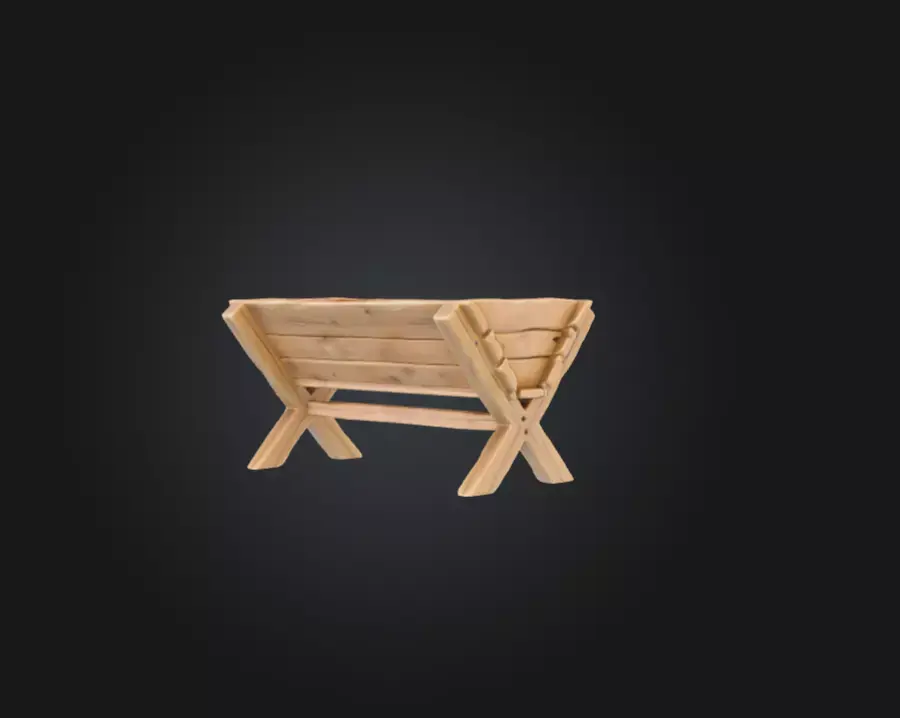 The neutral wooden tones blend naturally with outdoor settings such as farms, barns, villages, forests, camps, and frontier settlements. It is equally suitable for historical reconstructions, stylized fantasy worlds, cozy rural scenes, or low-tech survival environments. Whether used as a background prop or an interactive object, the Rustic Wooden Cradle Trough adds depth, realism, and warmth to any scene.