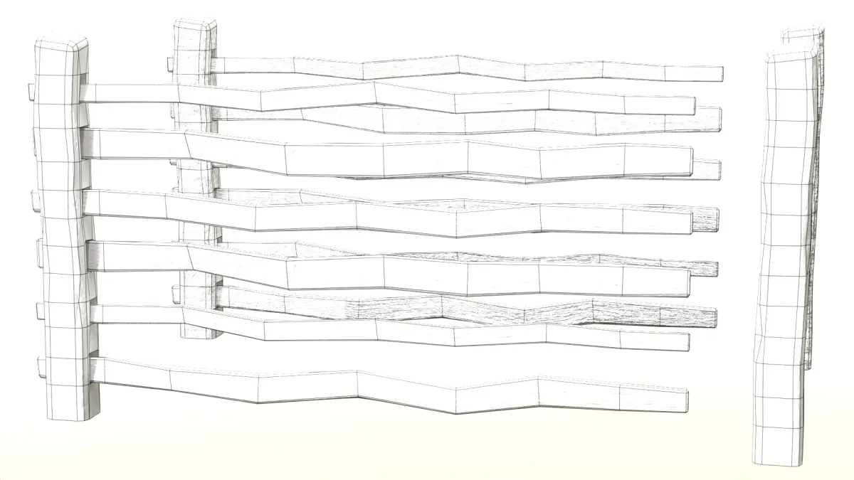 Wooden modular fence for a vegetable garden, around a house, plot.