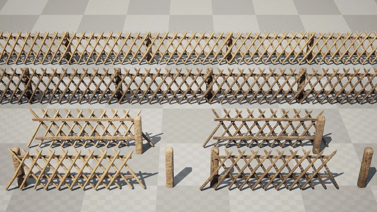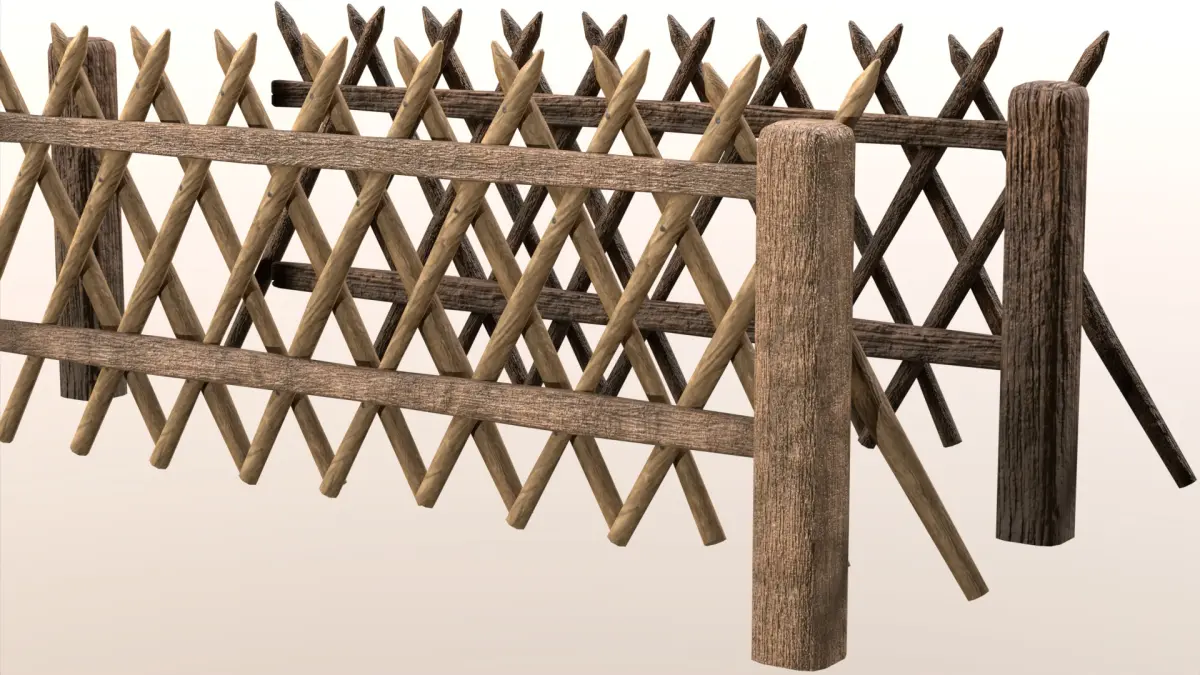 Wooden modular fence for a vegetable garden, around a house, plot.You can use it in realistic AAA games and videos, and in stylized ones.