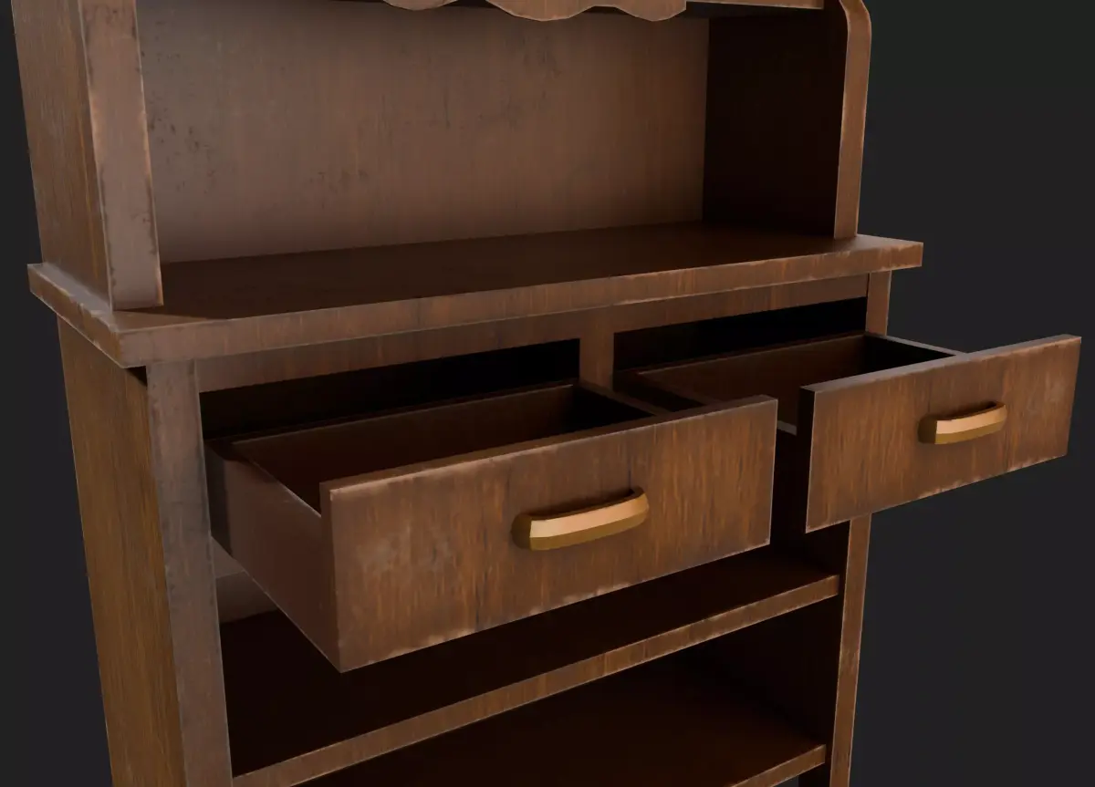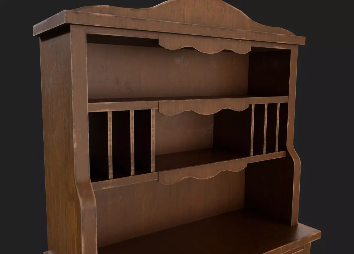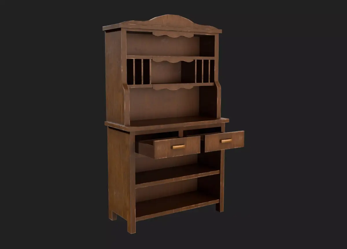 Rustic Wooden Hutch Cabinet it's a lowpoly game ready model with unwrapped UVs and PBR textures.