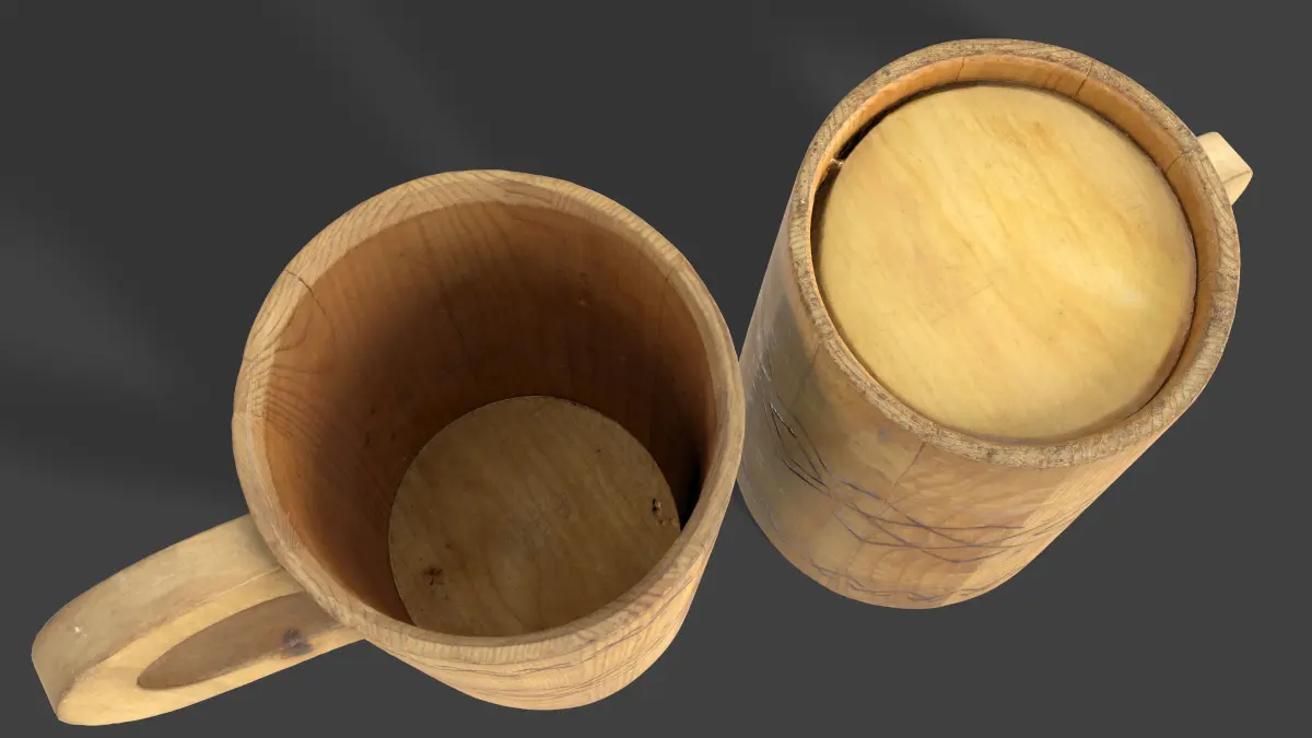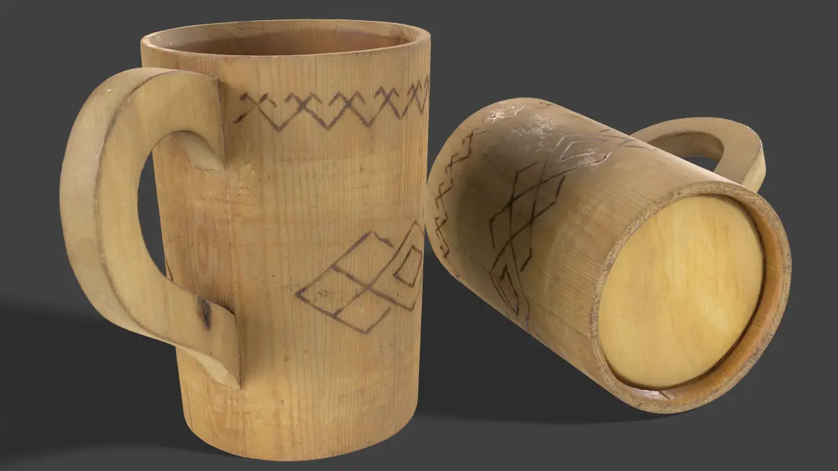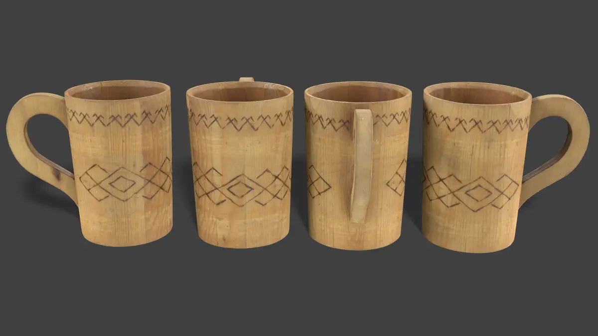 3D model Rustic Wooden Mug, 4K PBR pipeline textures. High and Low meshes have the same UV. Game Ready model.