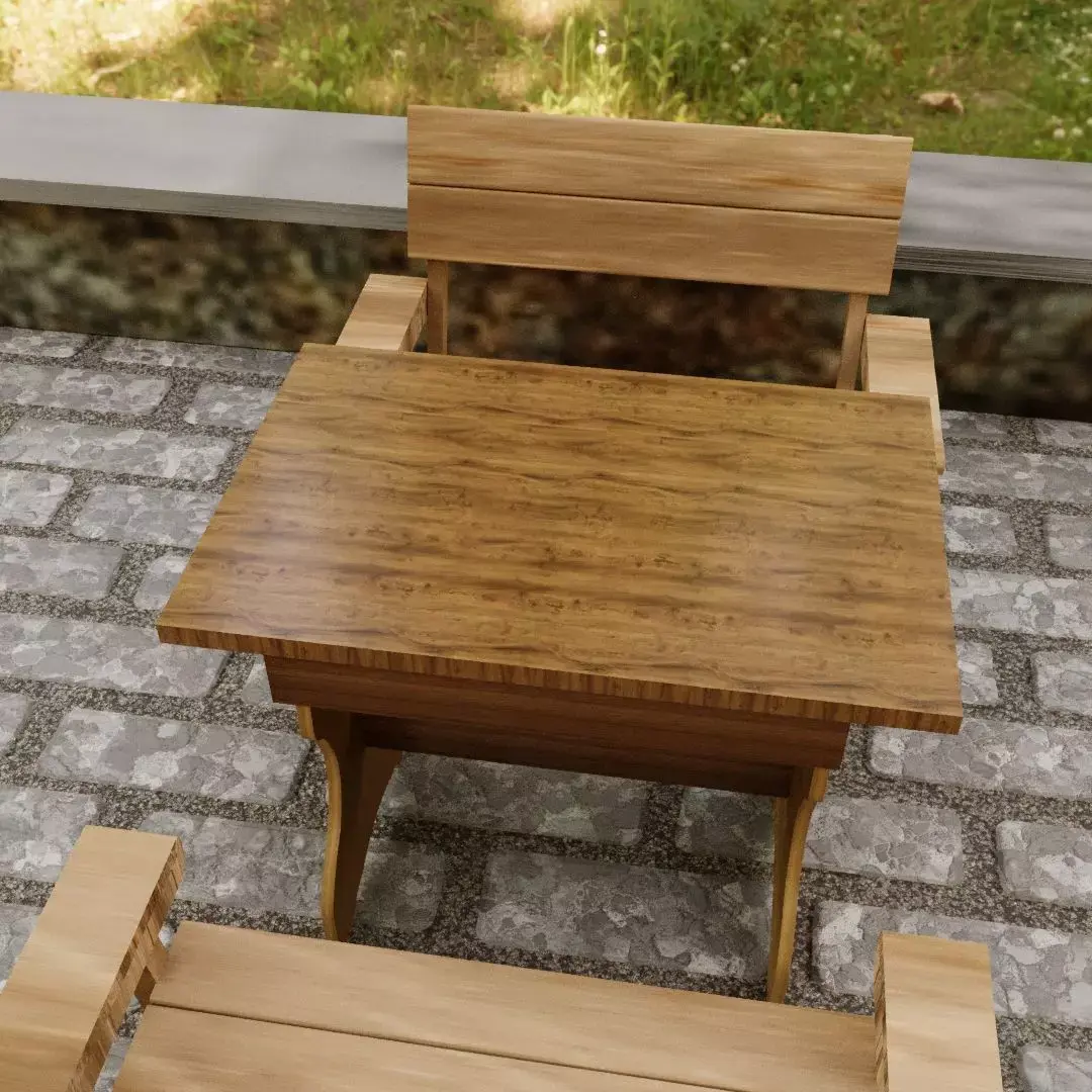 This is a high-detail 3D model set featuring a rustic wooden outdoor dining table and two chairs. It is perfect for enhancing architectural visualizations of terraces, gardens, balconies, and patio areas with a warm, natural aesthetic.Quality and Features:Complete Set: Includes one small dining table and two matching chairs.Rustic/Natural Look: Features detailed wooden textures suitable for outdoor environments.Clean Geometry: Built with optimized topology, maintaining our standard for high-score assets (9.6 Score Verified!).Versatile Use: Ideal for exterior renders, sunrooms, and cafe/restaurant outdoor seating areas.Render Ready: Includes PBR textures and is optimized for [Corona] rendering engines.Included File Formats:.MAX (3ds Max).FBX (Multi-format).OBJ (Multi-format)Note: Real-world scale. Check my portfolio for other high-quality, 9.6 score verified assets!
