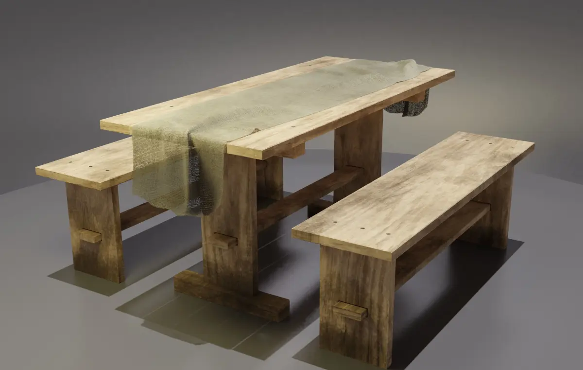 Table cloth and Table have their own texture sets. Table cloth is easily removed if desired.