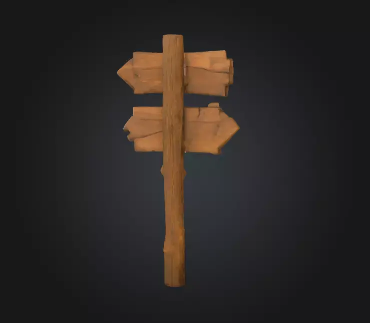 Perfect for use as a wayfinding prop in RPGs, adventure games, or fantasy towns, this asset can serve multiple purposes—marking paths, quest locations, or simply adding environmental storytelling to villages, forests, or roadside scenes. Its cartoon-like stylization makes it fit seamlessly into low-poly fantasy or hand-painted worlds while still retaining a believable wooden structure.