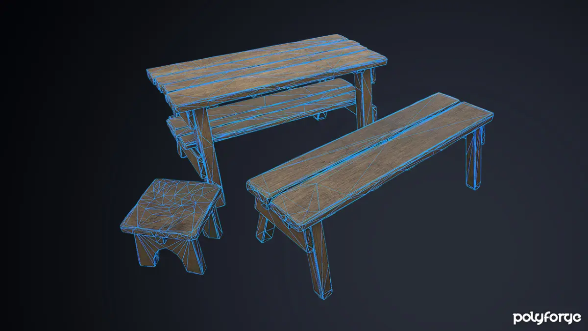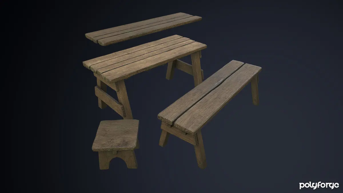 Texture Usage: Trestle Table, shelf and stool share 3 Texture maps @ 4096x 4096