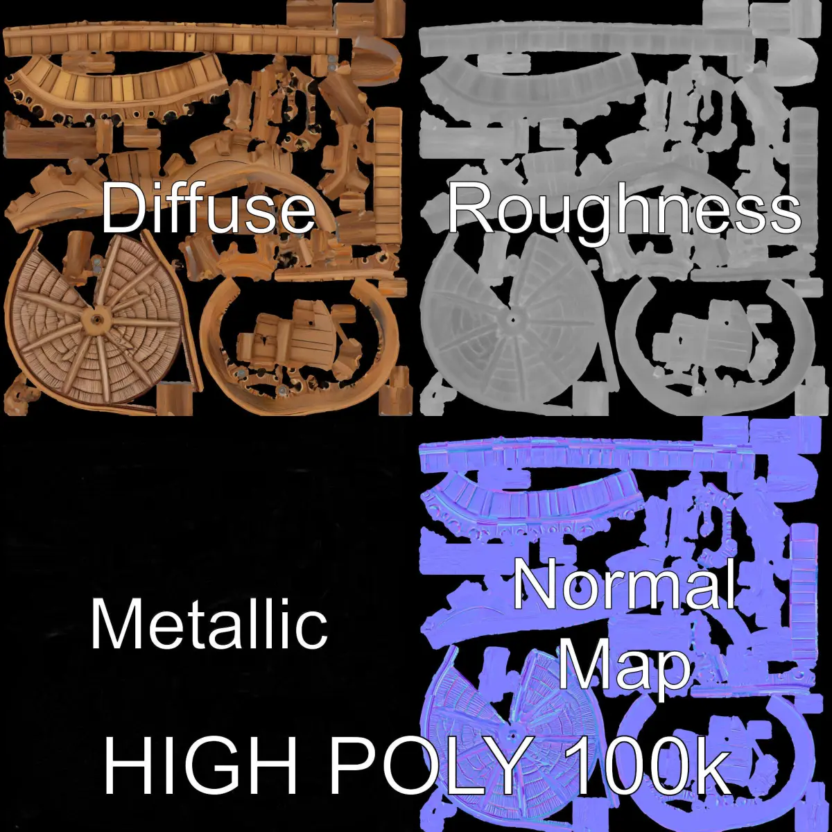 This Rustic Wooden Water Tower 3D Model Pack features three levels of detail (LOD): 1,000, 10,000, and 100,000 triangles. Perfect for mobile games, environment rendering, and production projects. Compatible with 3ds Max, Maya, Cinema 4D, Blender, Unity, and Unreal Engine. The model's realistic textures include PBR, Diffuse, Normal Map, and reflection/roughness/metallic maps, all at 4096x4096 resolution. The design is ideal for depicting rural or historical settings in games and visualizations. The model is accurately unwrapped with no overlapping UVs, ensuring high-quality renders. The first image is the reference used for creating the 3D model. It is important to carefully evaluate the quality of the model by examining the preview images that display the topology and polygonal mesh. These previews (WIRE and WEB 3D Preview) clearly demonstrate how accurately the model matches the original reference and how well the geometry has been executed. If you appreciate the model, please like and comment to support further creations!
