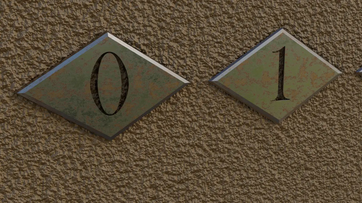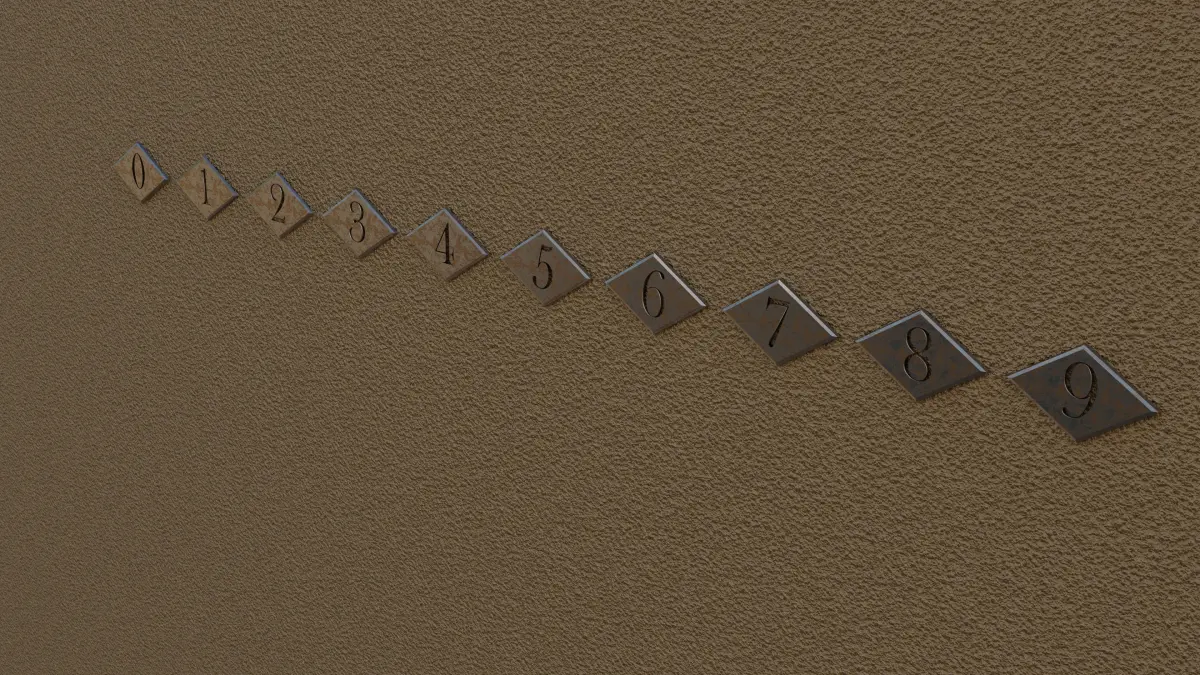 3d Models of rusty apartment/hotel room numbers created in Blender 4.2.2.