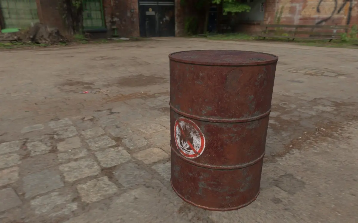 Very detailed barrel with Fuel Style , No-Fire Sign on it and rust. For every engine and Vray.