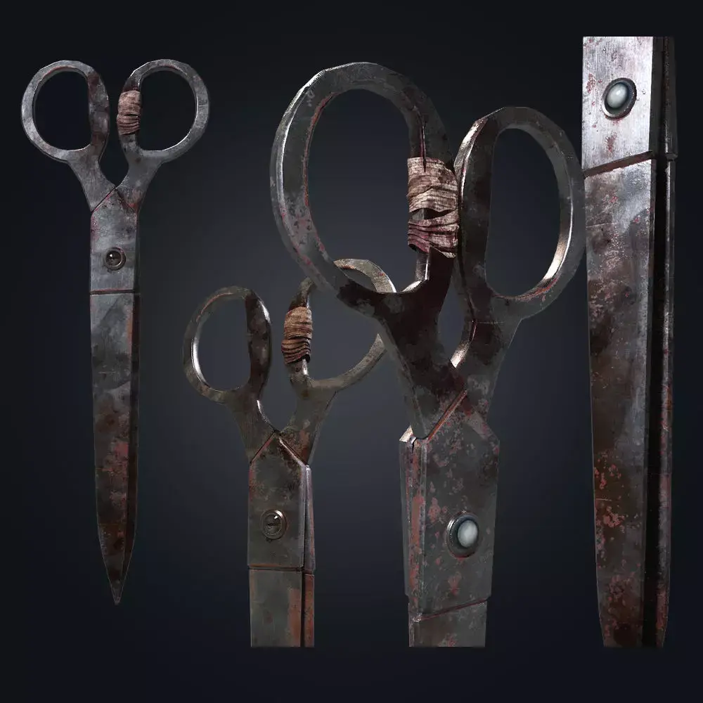 Old rusty scissors fitting for the horror genre - slightly stylized texturing.