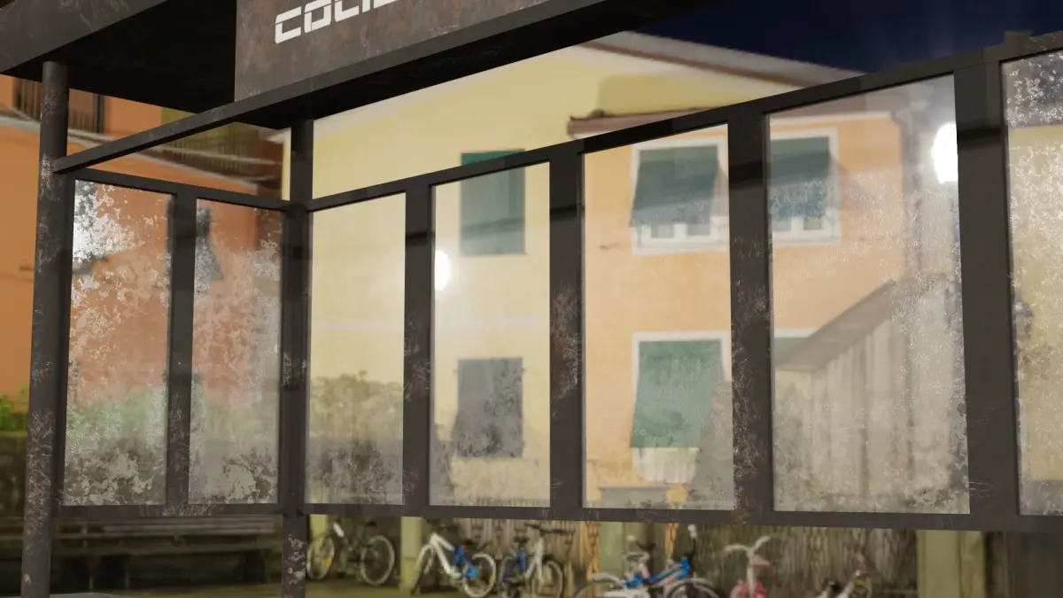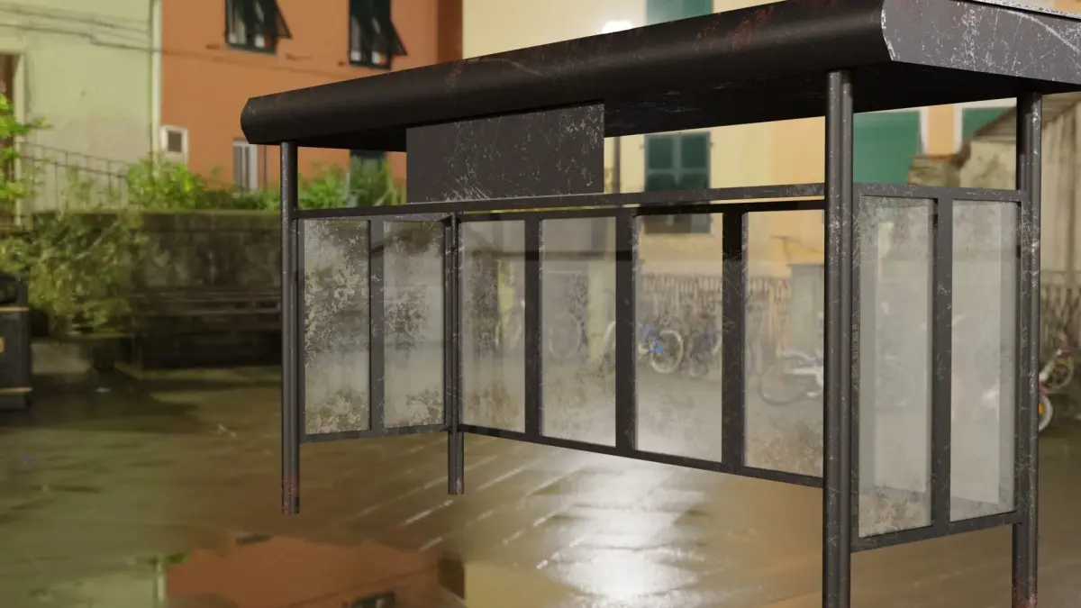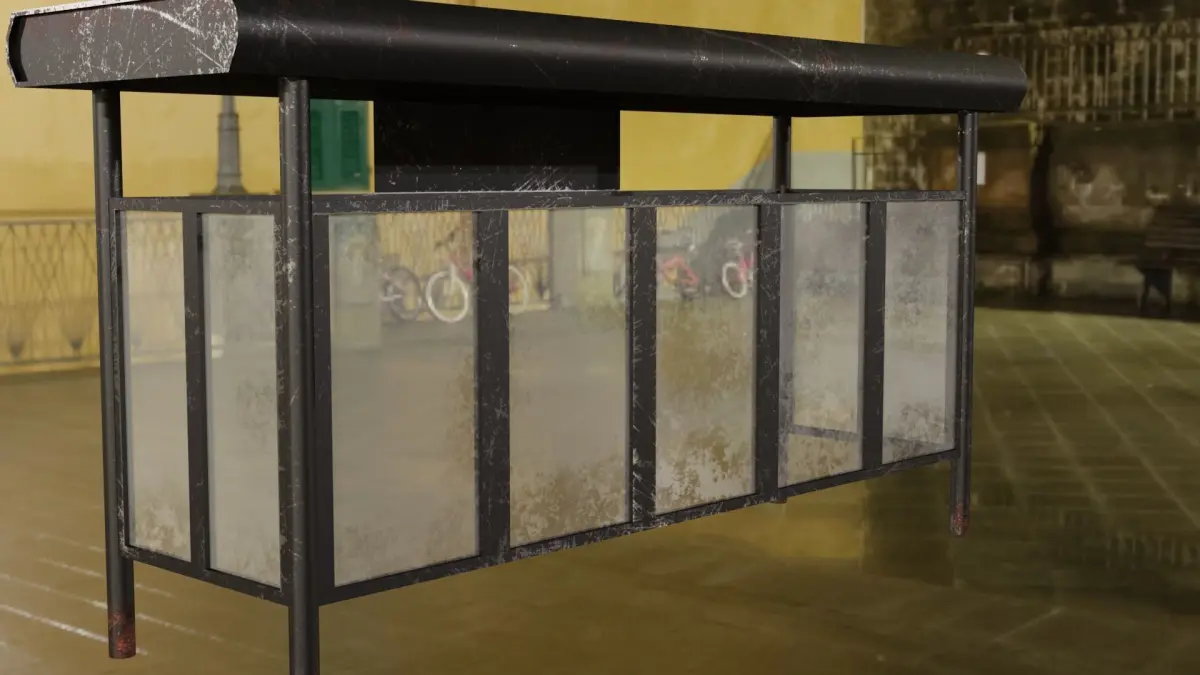 A rusty, minimalist bus stop. The texture set is in a .zip file. Textures in resolution 4096x4096 pixels