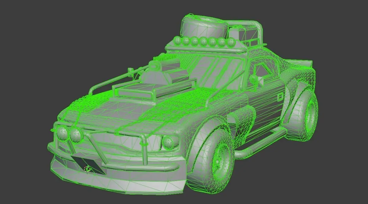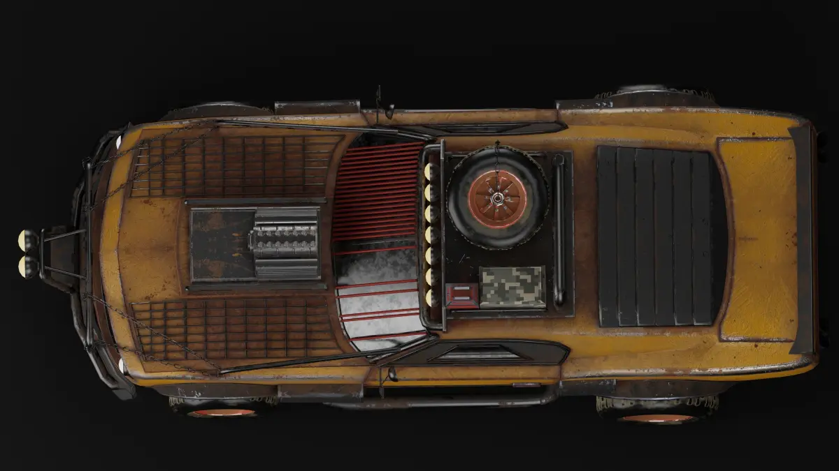 It is a game asset. It has 65,516 triangles. The wheels and the base body are separated. Wheels and Body have separate texture maps. All these are included in that .rar file. The rear wheels are a little bit bigger than the font wheels.