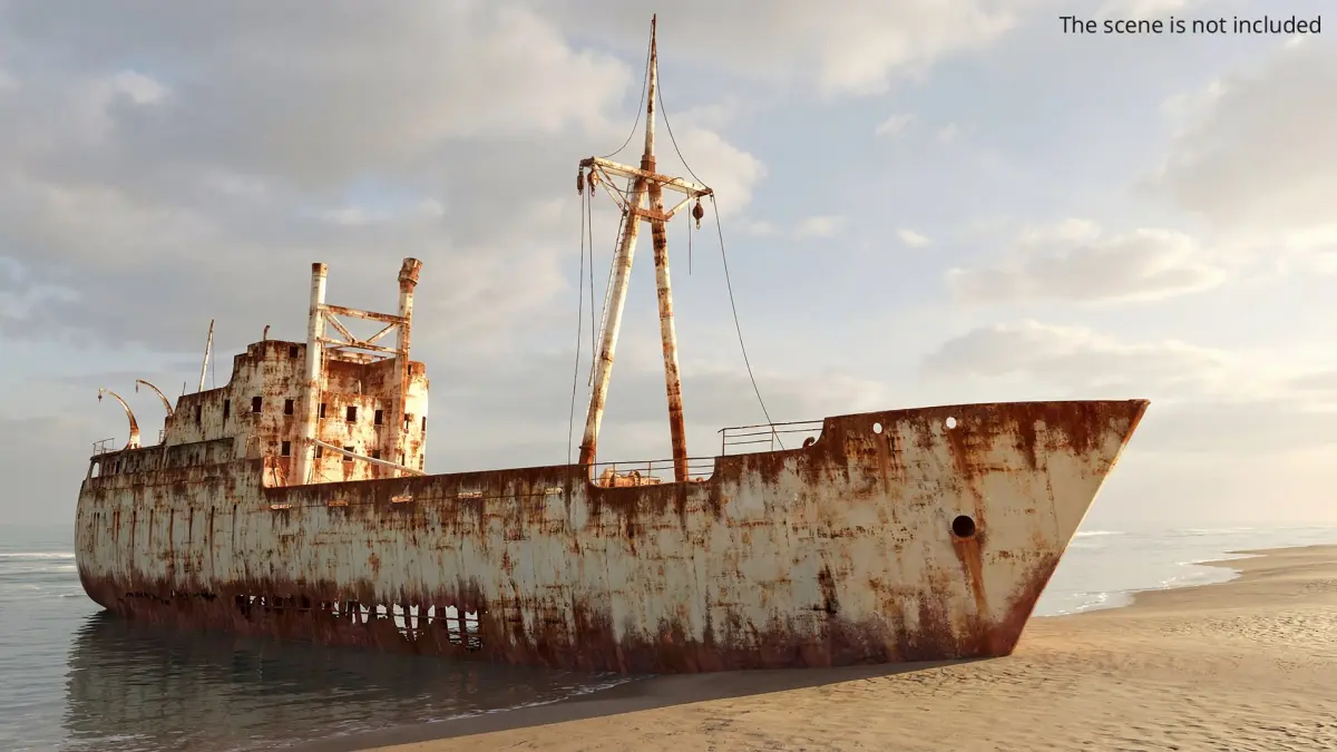Rusty Cargo Ship Wreck Vessel Old Rust Brown is a high quality, photo real 3d model that will enhance detail and realism to any of your rendering projects. The model has a fully textured, detailed design that allows for close-up renders, and was originally modeled in 3ds Max 2020 and rendered with V-Ray. Renders have no postprocessing!