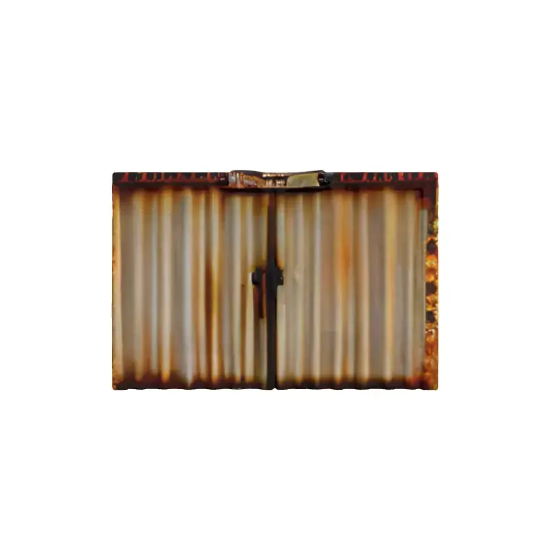 This highly detailed 3D model presents a set of rusty corrugated metal double doors, meticulously crafted to replicate a weathered and aged appearance. The model features distressed steel panels, prominently displaying realistic rust, peeling paint, and environmental wear. A sturdy, equally rusted metal frame with visible rivets secures the corrugated sheets, adding to its authentic industrial or derelict aesthetic. This versatile asset is ideal for various digital applications, including enriching game environments for post-apocalyptic, survival, horror, or industrial-themed scenes, where it can serve as a crucial prop for sheds, barns, or forgotten structures. It is also perfectly suited for architectural visualization projects requiring a rustic or abandoned look, as well as for film, animation, and digital art compositions that demand high visual fidelity. The model is optimized for real-time applications, ensuring efficient performance in AR/VR experiences and game engines. It comes fully UV unwrapped with high-quality PBR textures (Albedo, Normal, Roughness, Metalness, Ambient Occlusion) to deliver photorealistic rendering. Clean topology ensures smooth performance and easy integration into any 3D pipeline. Supported file formats include GLB, OBJ, STL, ABC, DAE, FBX, USD, and PLY, offering broad compatibility for different software. Its robust design and authentic detailing make it suitable for both static renderings and dynamic, interactive environments.
