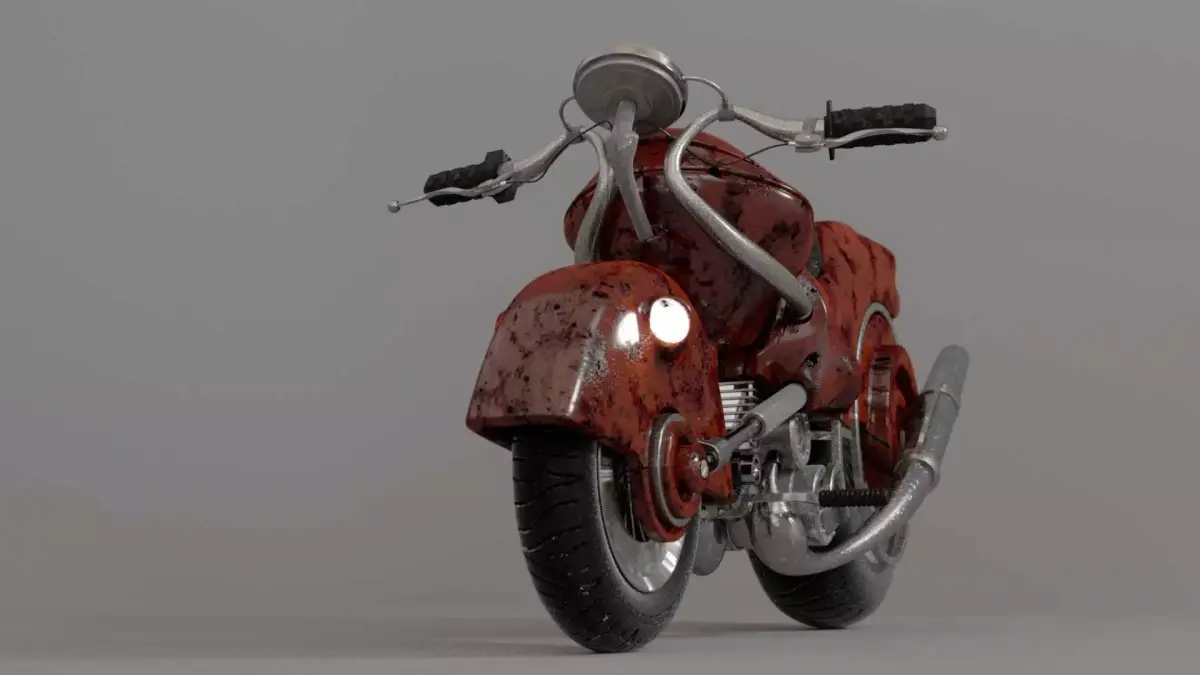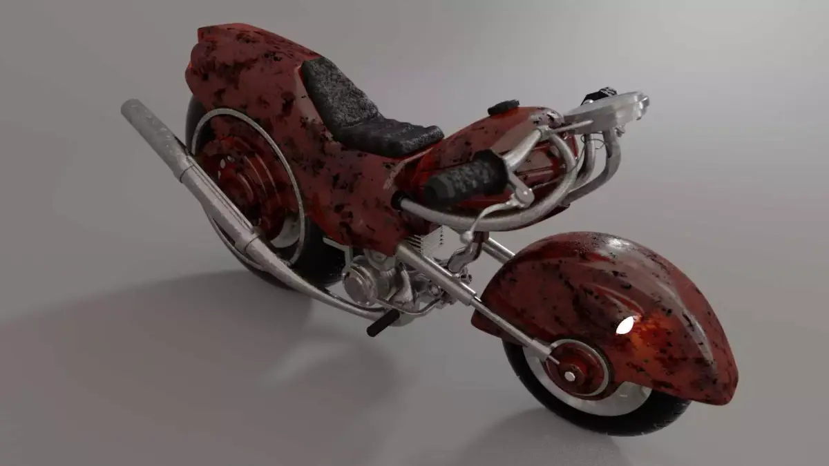 Highly detailed custom retro motorcycle 3D model with a realistic rusty metal finish.Designed and rendered in Cinema 4D, this model is perfect for games, cinematics, animations, product visualization, and post-apocalyptic or industrial scenes.